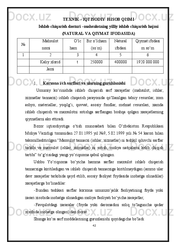 9Texnik – iqtisodiy xisob qismi.......................................................42