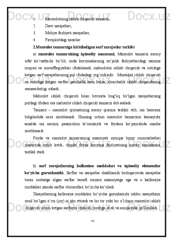 kiradi.   Bu   xarajatlar   tarkibida   xam   mahsulot   mikdorining   ko‘payishi   yoki