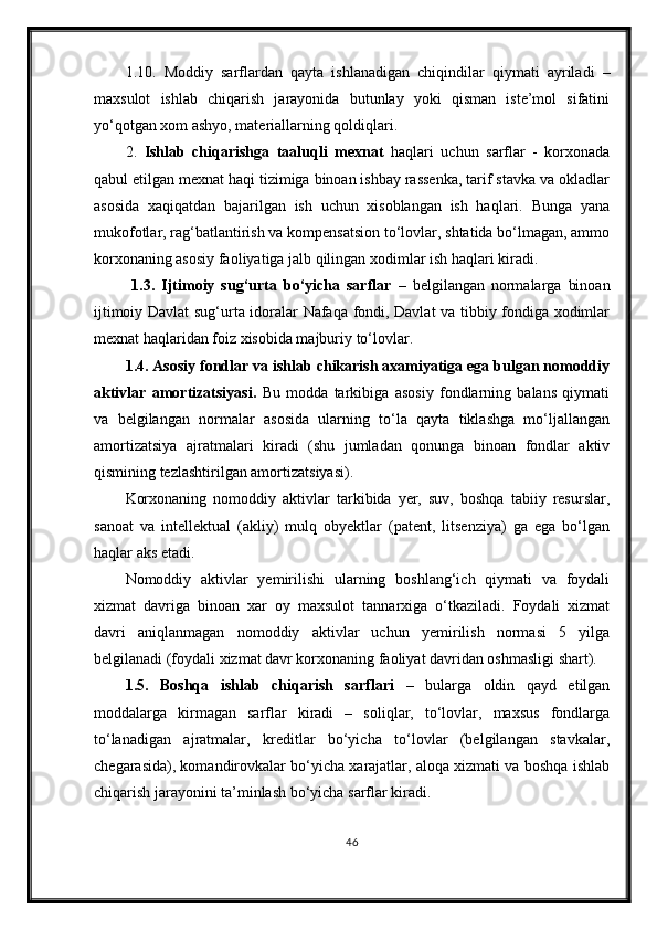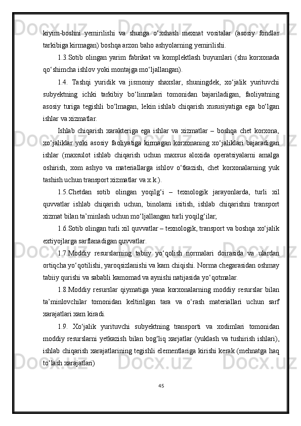 (energiya,   suv,   bug‘   va   hokazolar   sarfi),   shuning   uchun   ular   mazkur   mahsulot