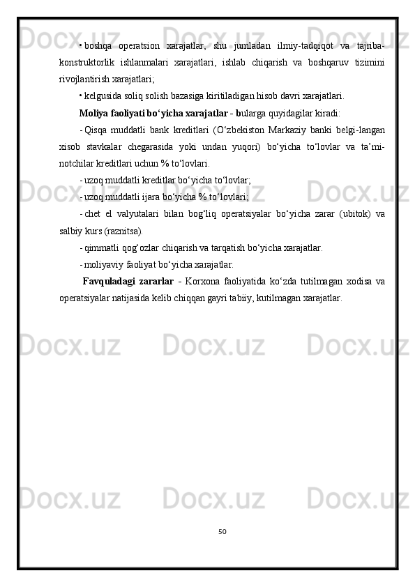 bog‘liq bo‘lgan xarajatlar kiradi va ular quyidagilardan iborat: