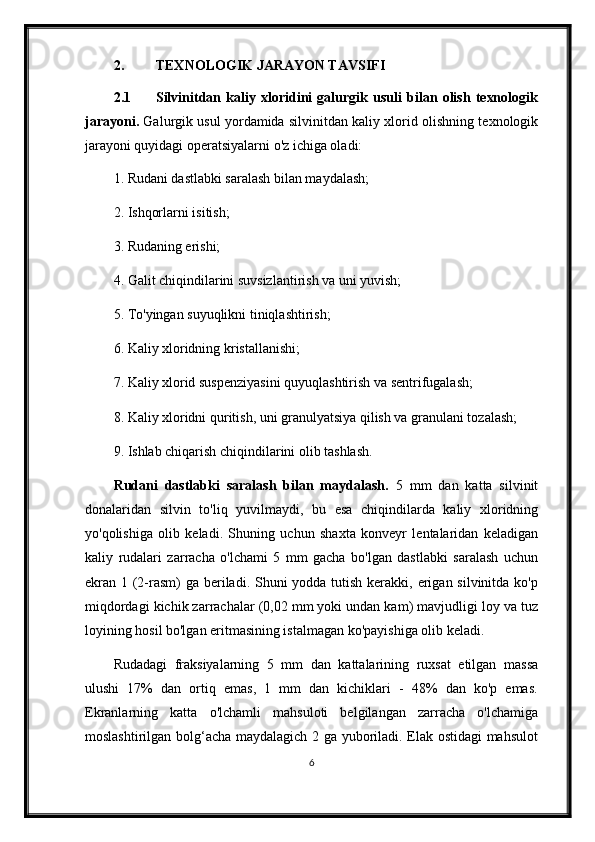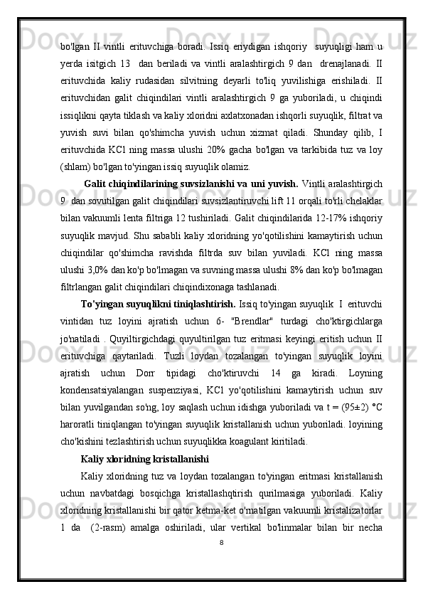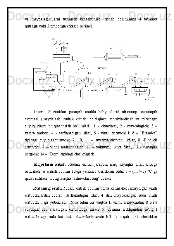 1-rasm.   Silvinitdan   galurgik   usulda   kaliy   xlorid   olishning   texnologik