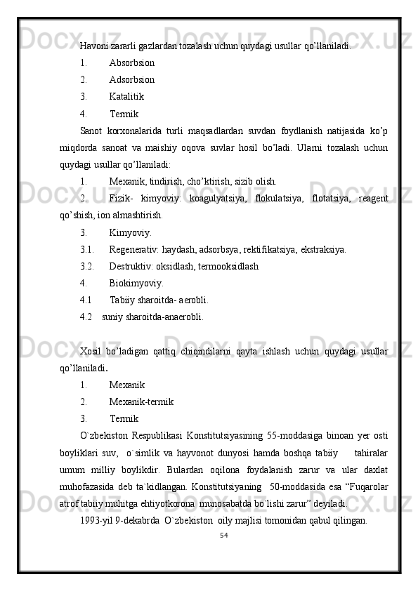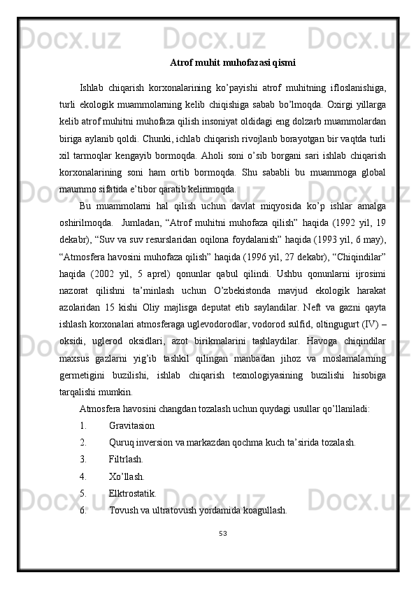 kamaytirishga   qaratilgan.   Atmosfera   havosini   ifloslantiruvchi   manbalarga   asosan