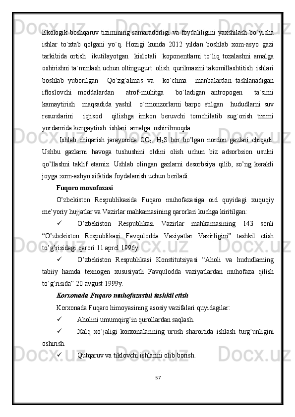qonun   qabul   qilindi.   Qonunga   asosan   tashlanayotgan   chiqindilar   miqdori