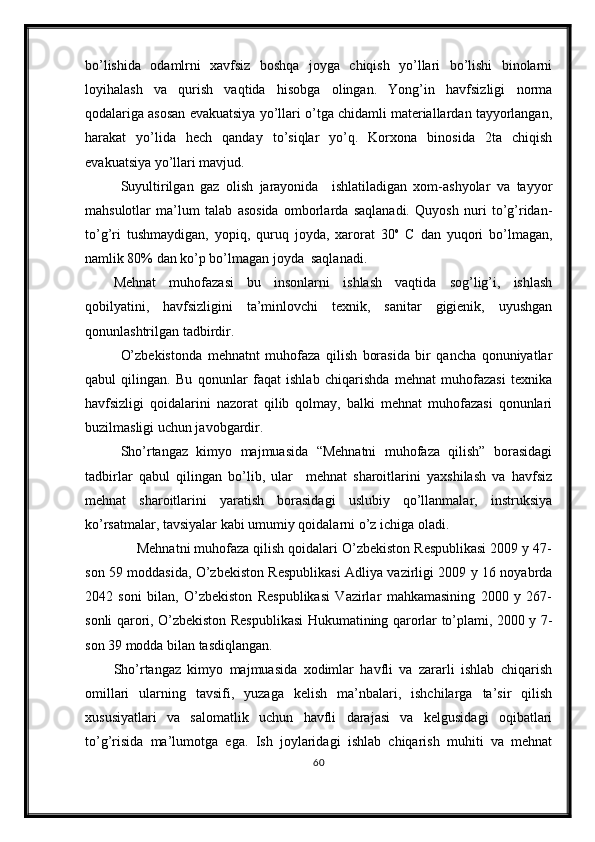 ishchilarning   tartibli   evakuatsiyasini   ta’minlashni   nazorat   qilinadi.   Yong’in