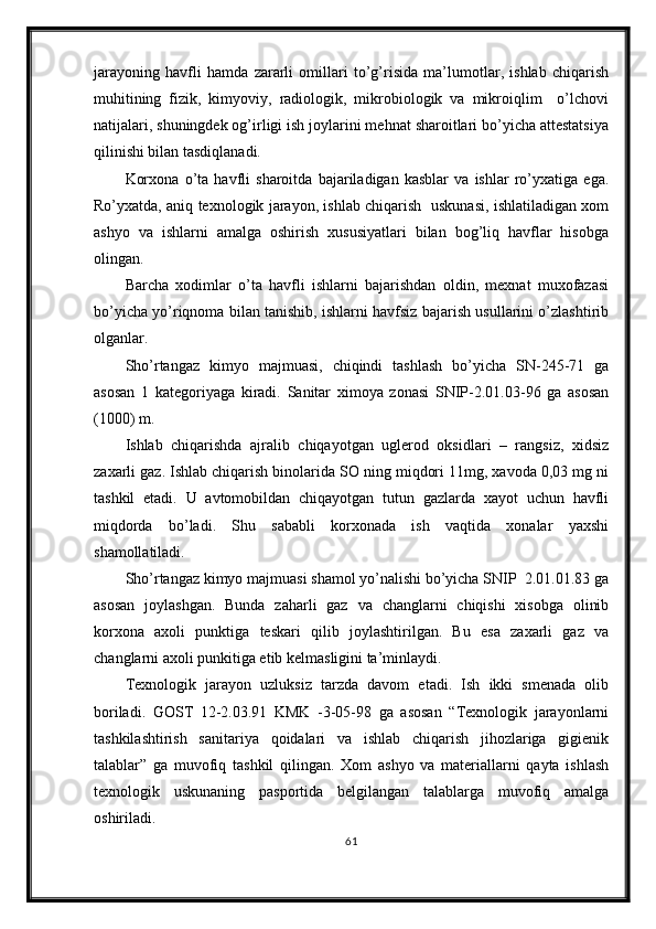 ishchi hududlaratmosfera havosi tahlili va atmosferani ifloslovchi manbalar tahlili,