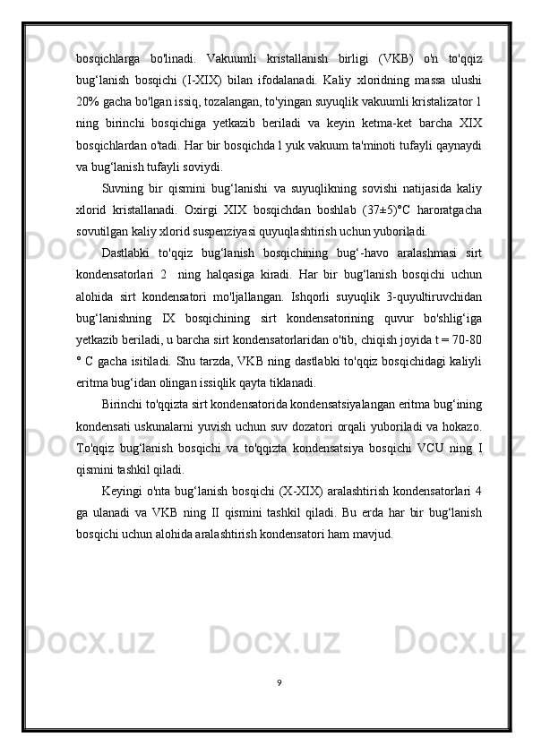 qadar isitiladi, uning issiqlik tashuvchisi bug‘ bo'ladi.