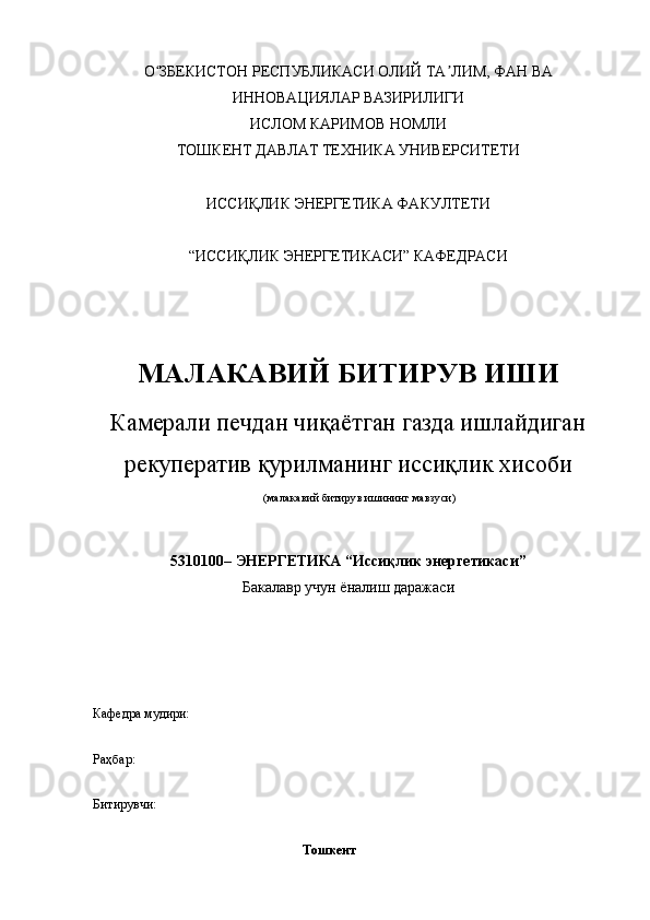 Камерали печдан чиқаётган газда ишлайдиган рекуператив қурилманинг иссиқлик хисоби