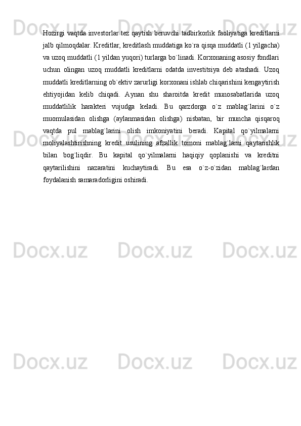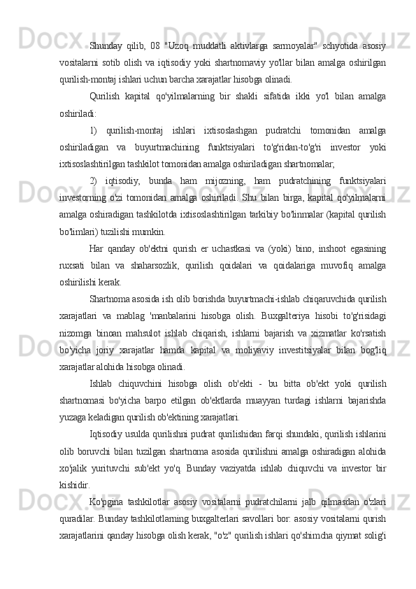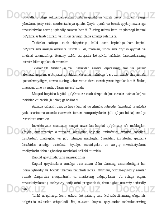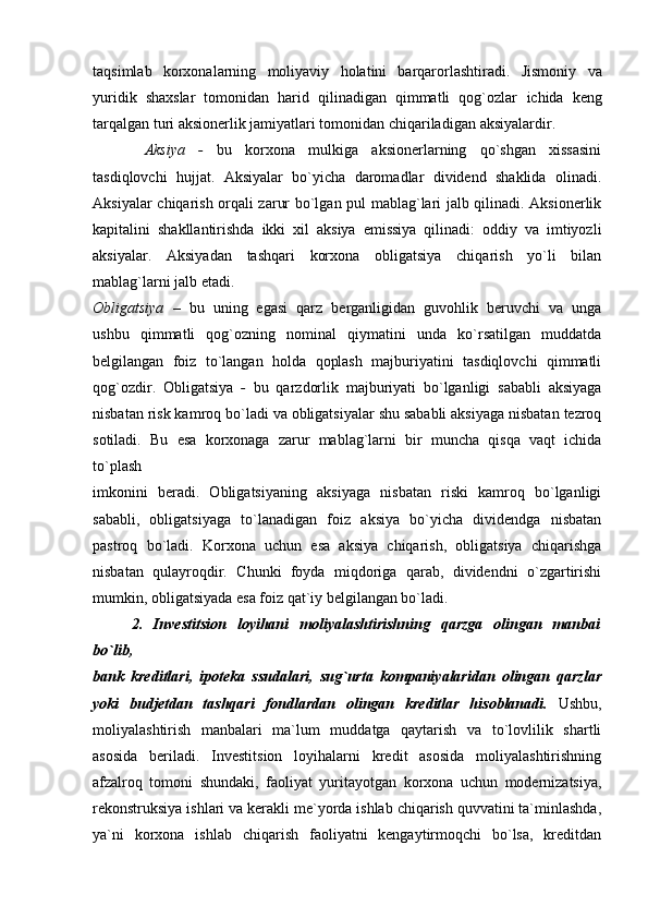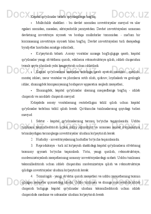 Kapital qo’yilmalarini moliyalashtirish samaradorligining nazariy huquqiy masalalari