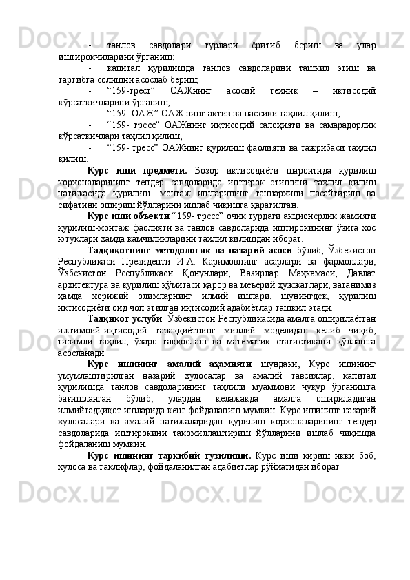 Капитал қурилишда танлов савдоларини ташкил этиш