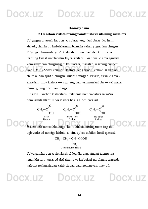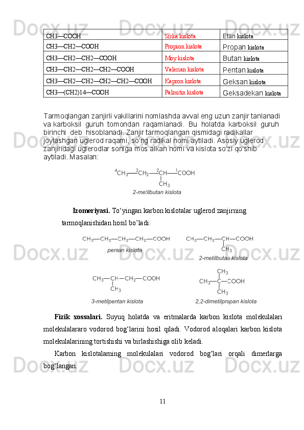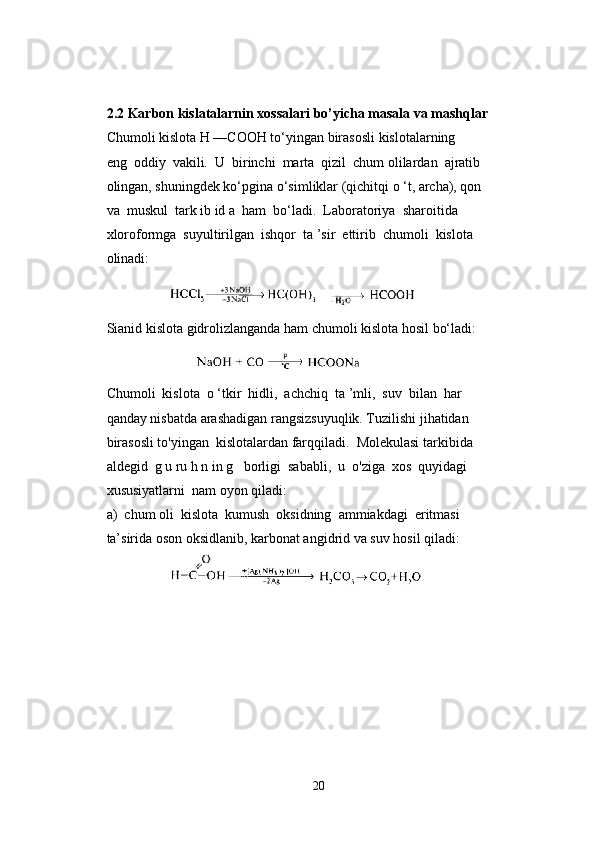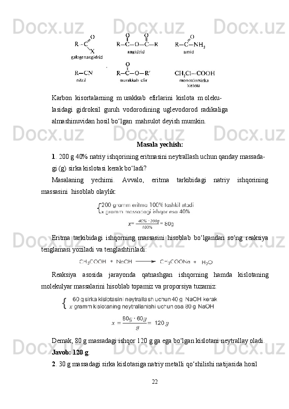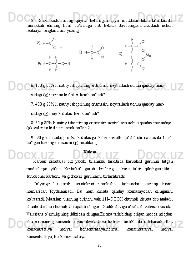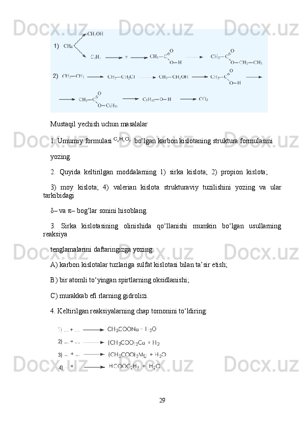 Karbon kislotalarning nomlanishi va xossalariga doir masala va mashqlar yechish