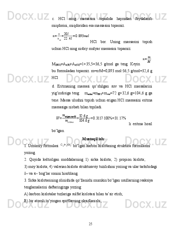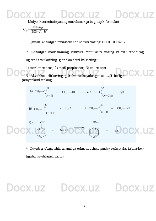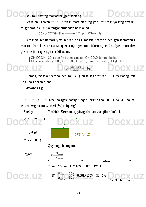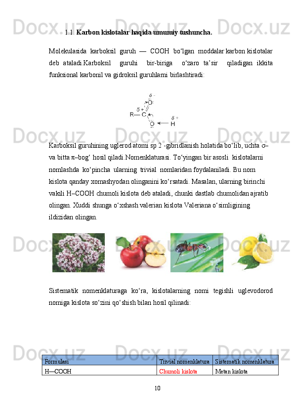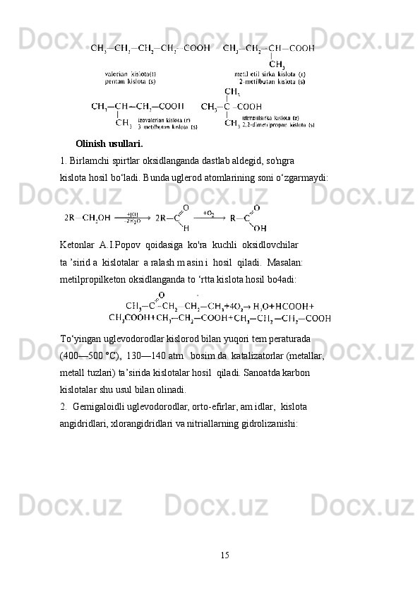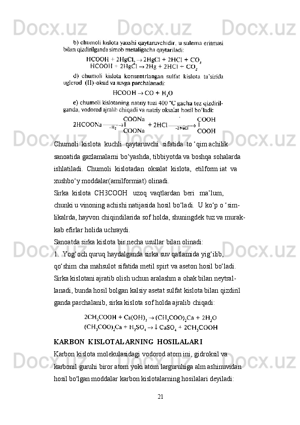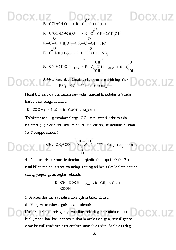 Karbon kislotalarning nomlanishi va xossalariga doir masala va mashqlar yechish