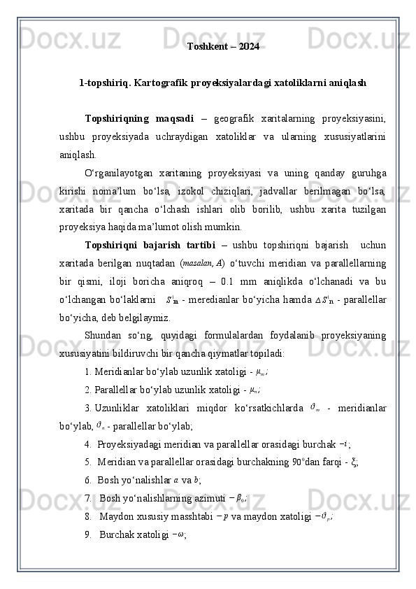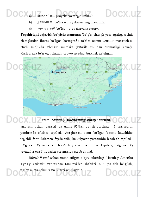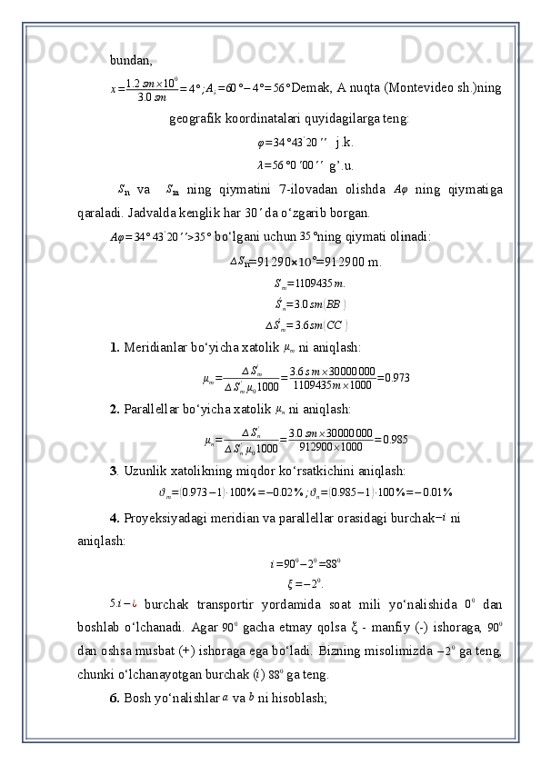 Kartografik proyeksiyalardagi xatoliklarni aniqlash