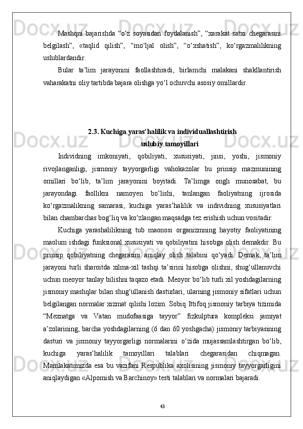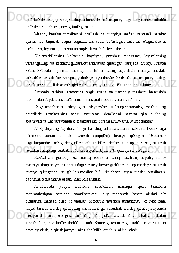 Kasb-hunar kollejlarida gimnastika darslarida qo‘llaniladigan uslublar