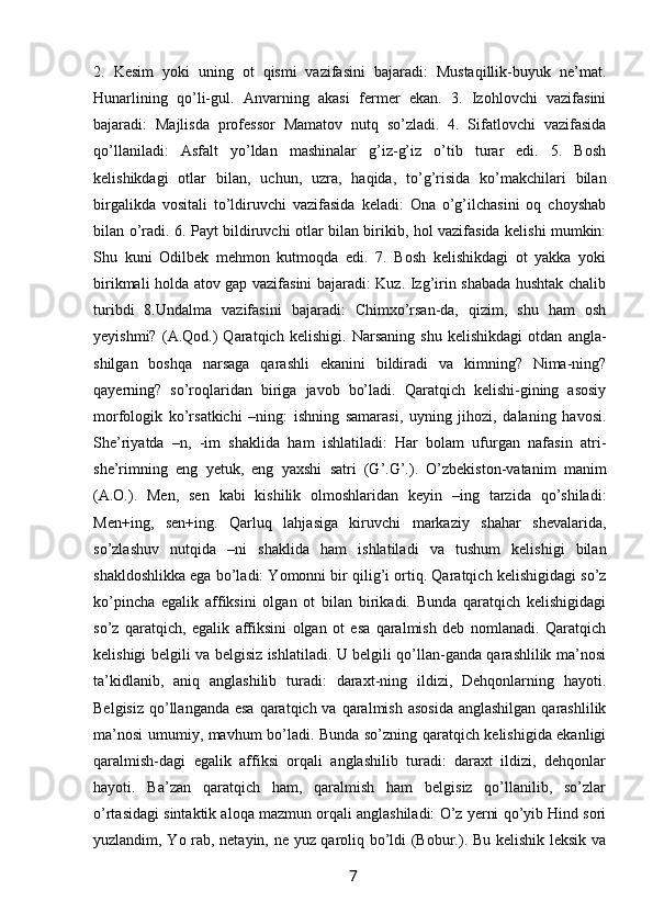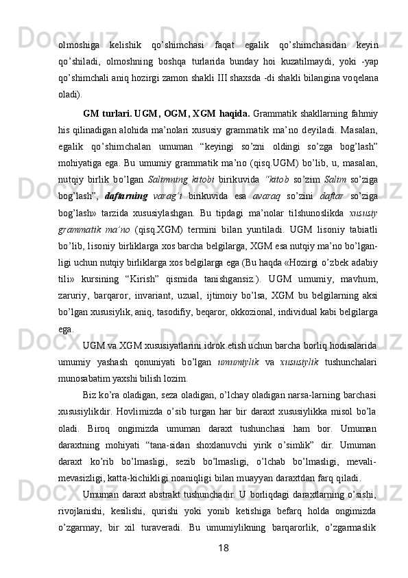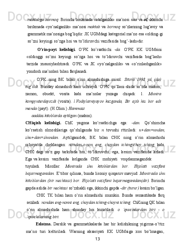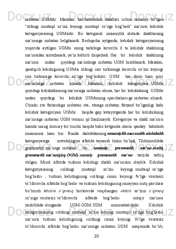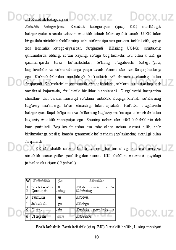 Kelishik umumiy ma’nosining nutqiy xususiylashuvi