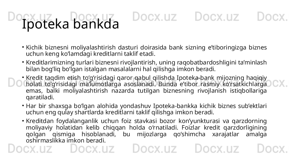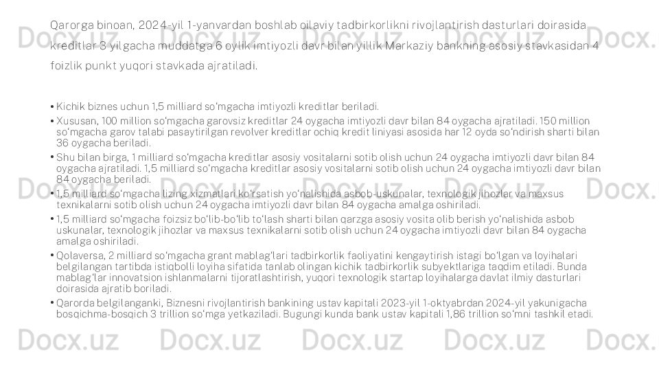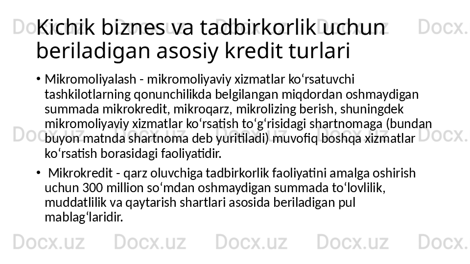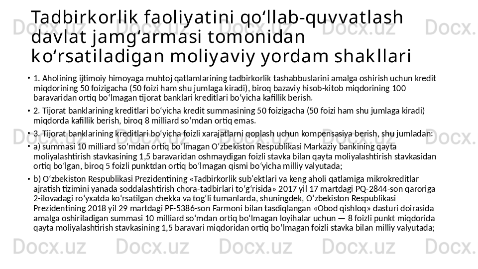 Kichik bizness va tadbirkorlikni rivojlantirish