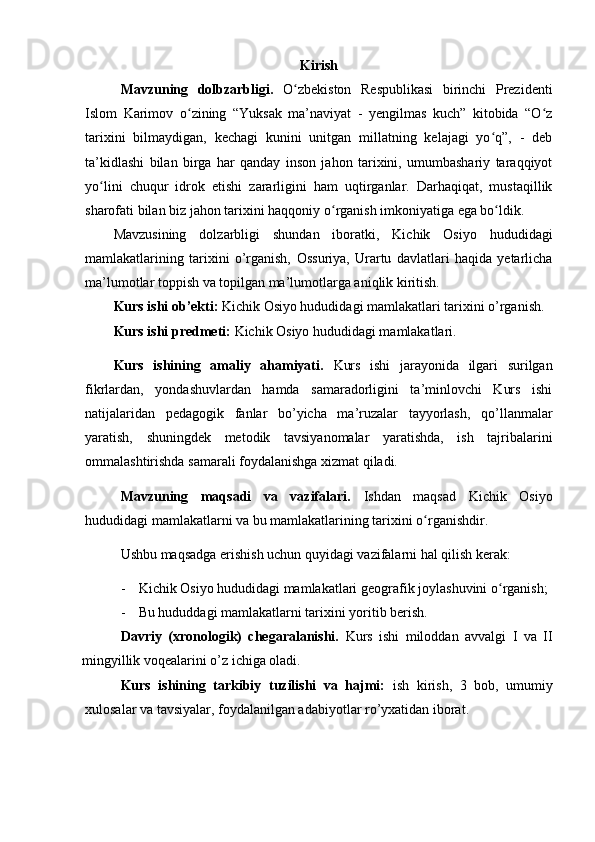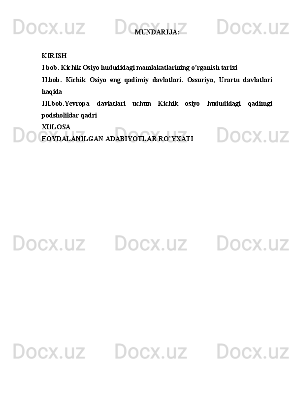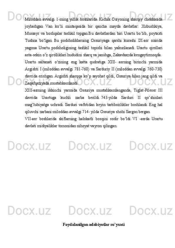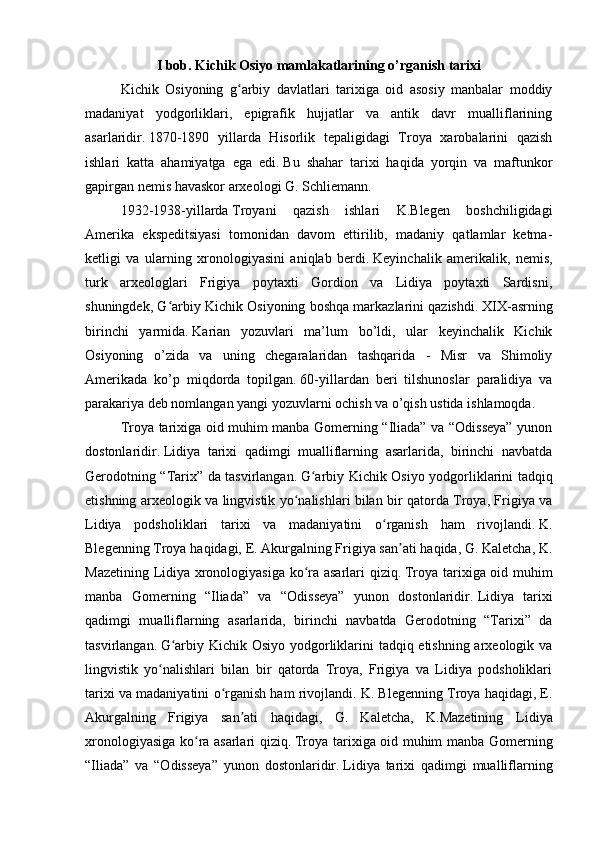 Kichik Osiyo hududidagi qadimgi podsholiklar tarixi