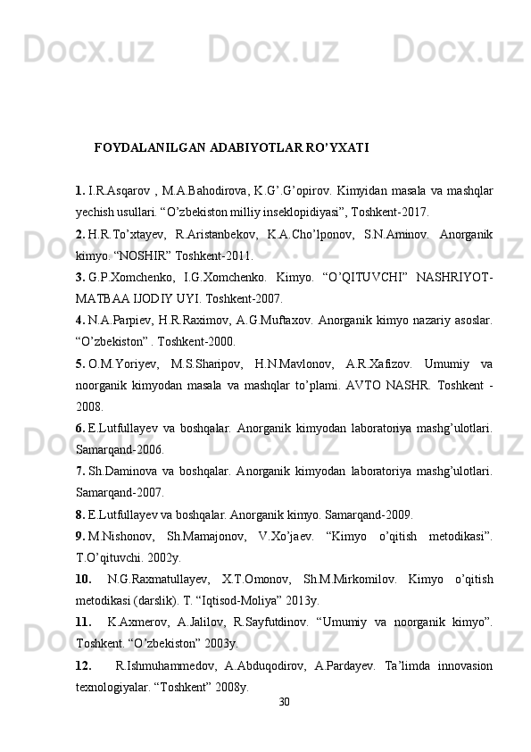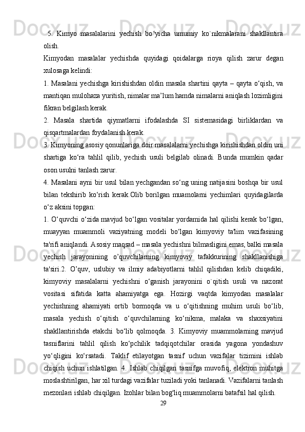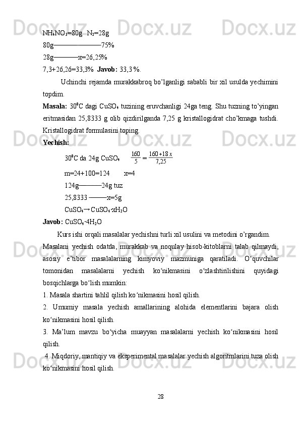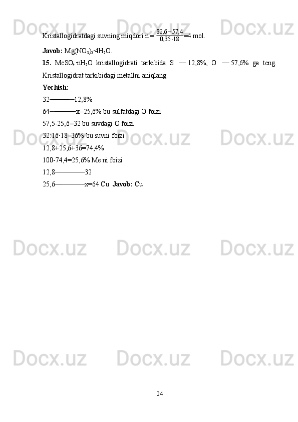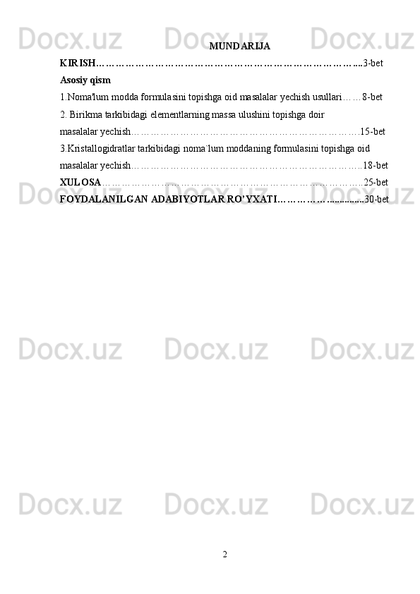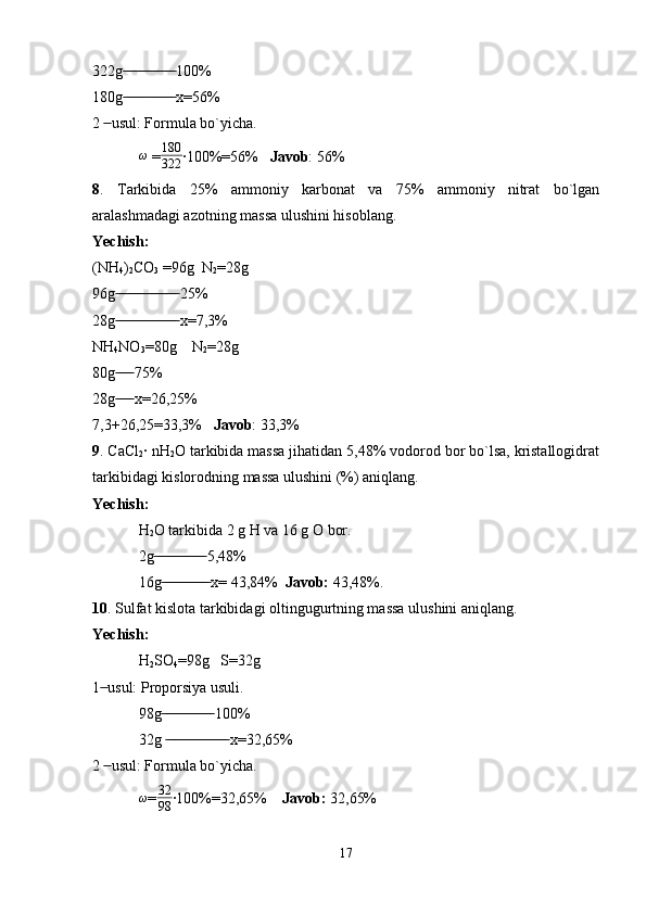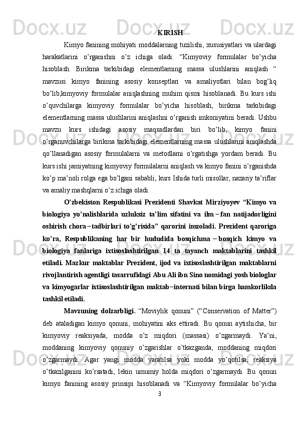 Kimyoviy formulalar bo’yicha hisoblash. Birikma tarkibidagi elementlarning massa ulushlarini aniqlash