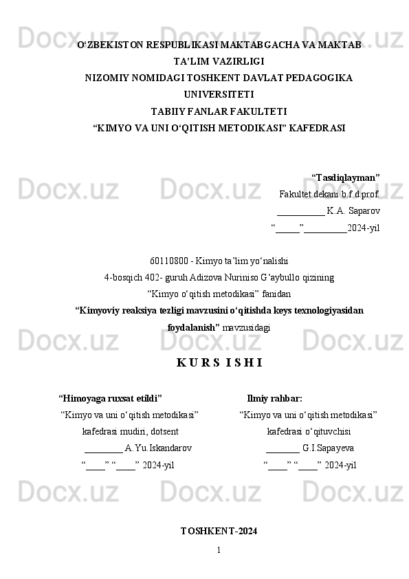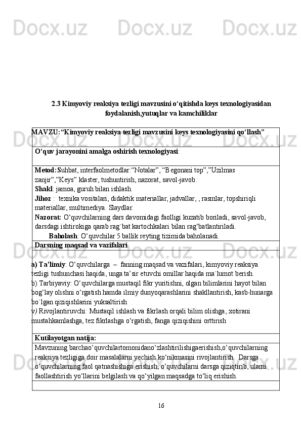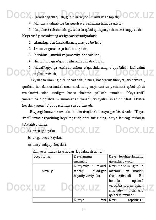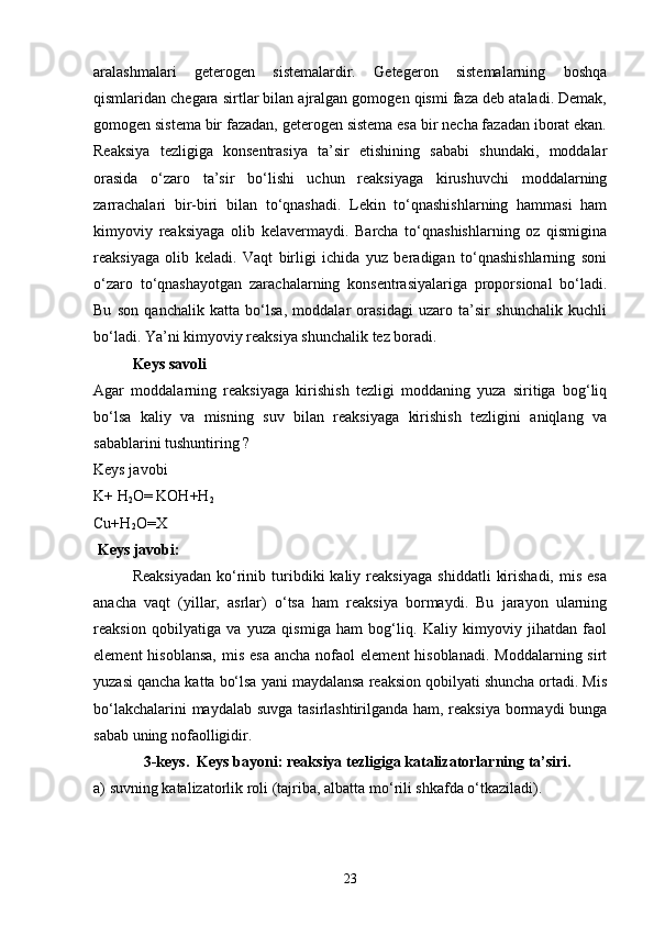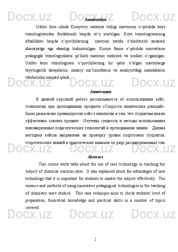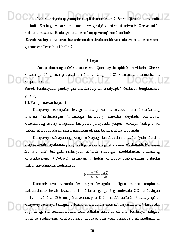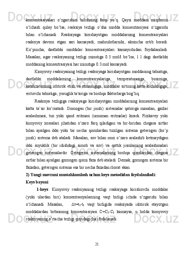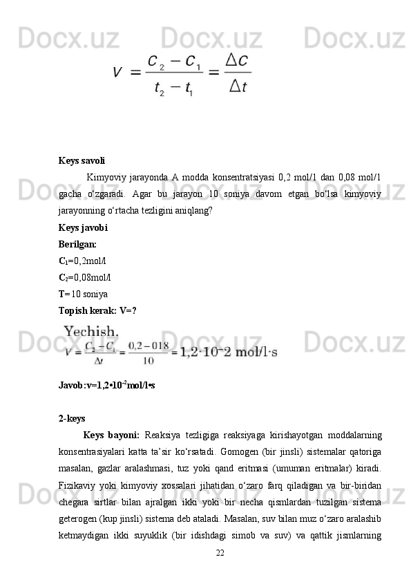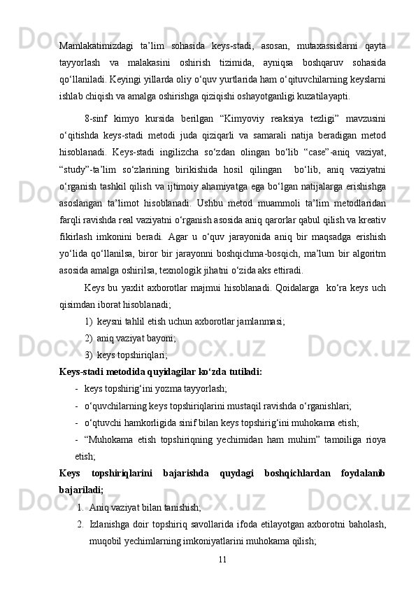 Kimyoviy reaksiya tezligi mavzusini o‘qitishda keys texnologiyasidan foydalanish