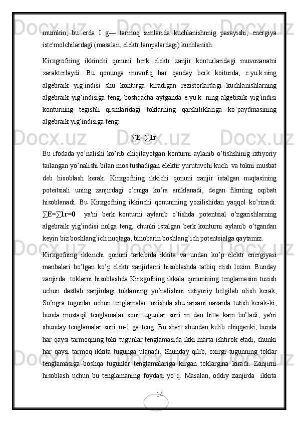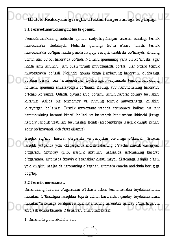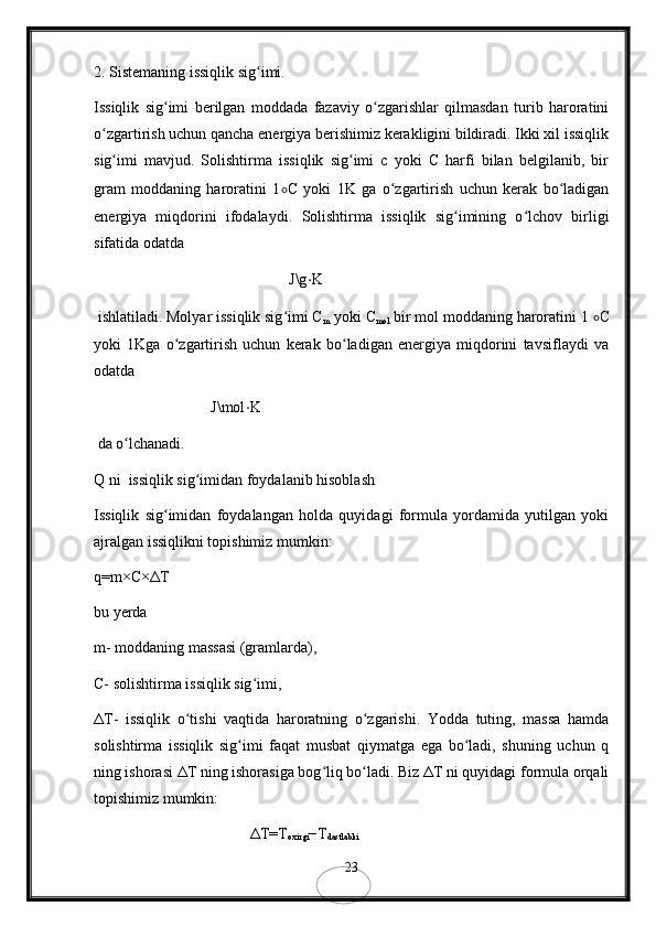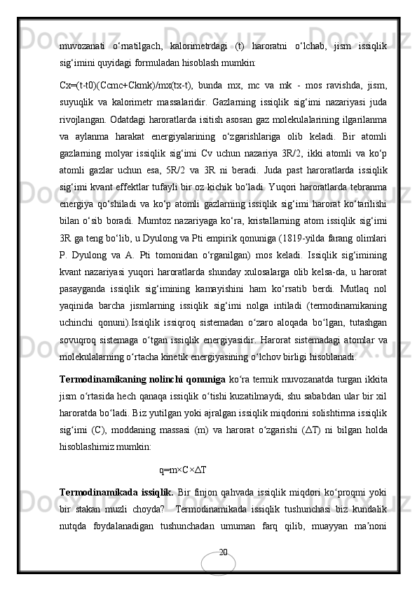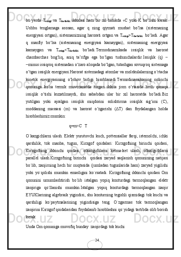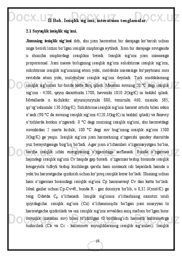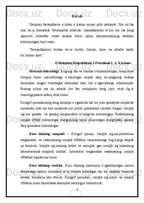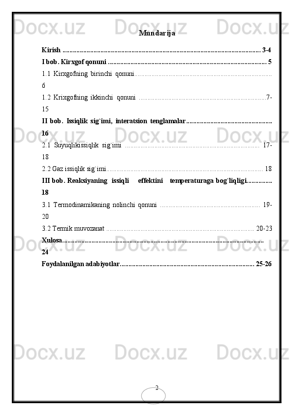 Kirxgof qonuni. Issiqlik sig`imi, interatsion tenglamalar. Reaksiyaning issiqlik effektini temperaturaga bog`liqligi