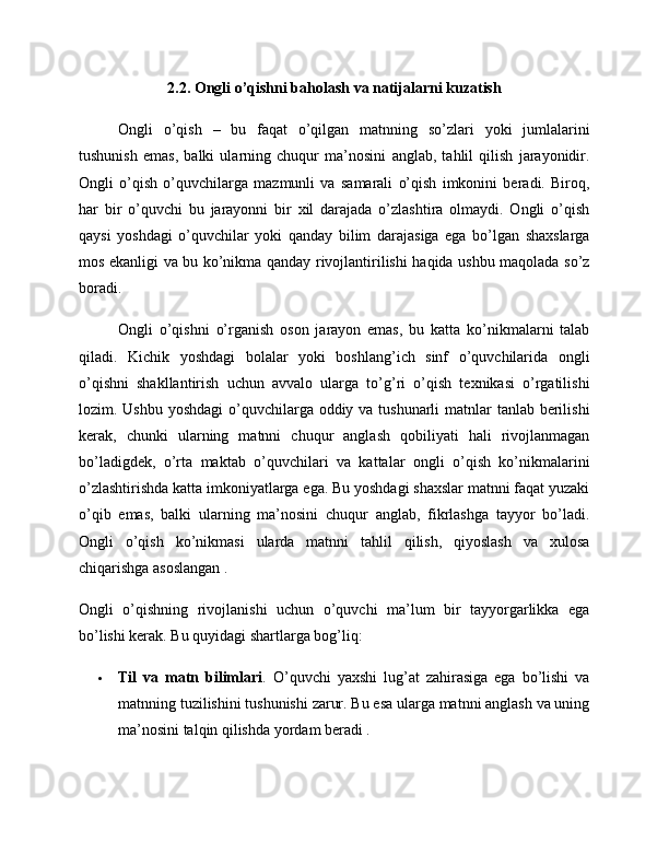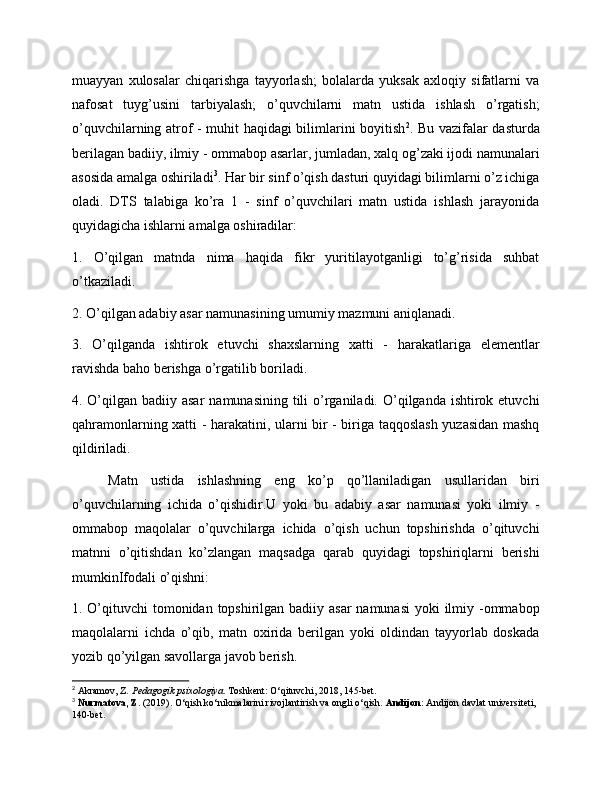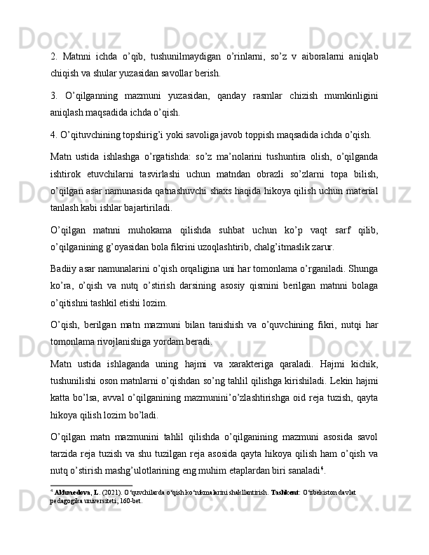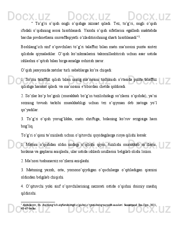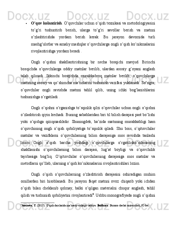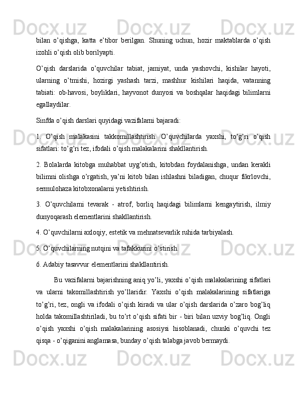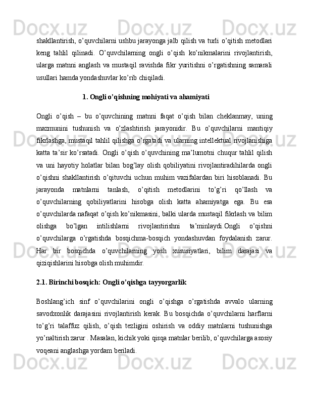 Kitobxonlik faoliyatini shakllantirish (to’g’ri, tez, ongli o’qish)