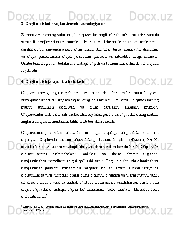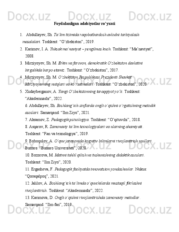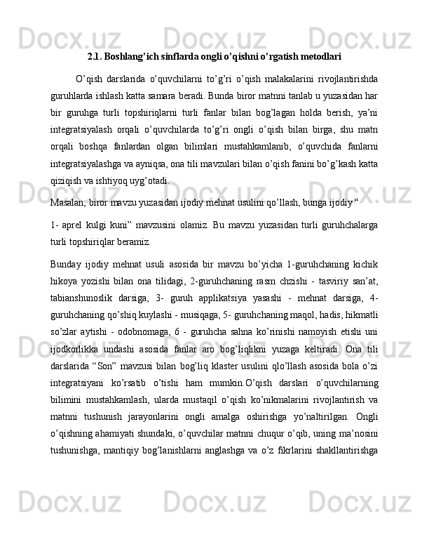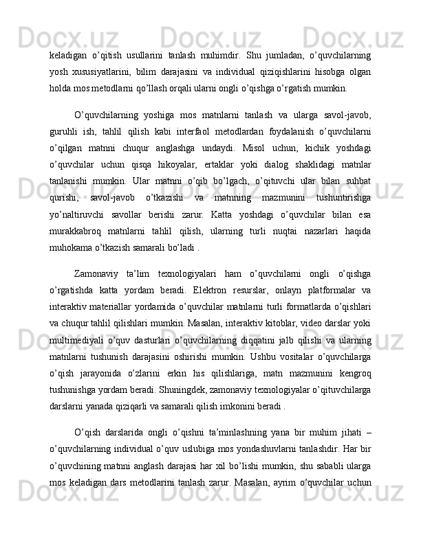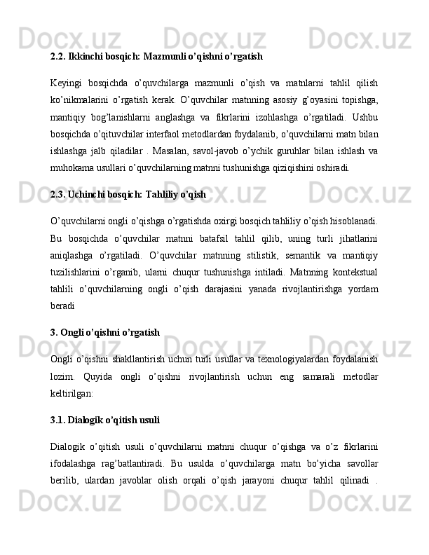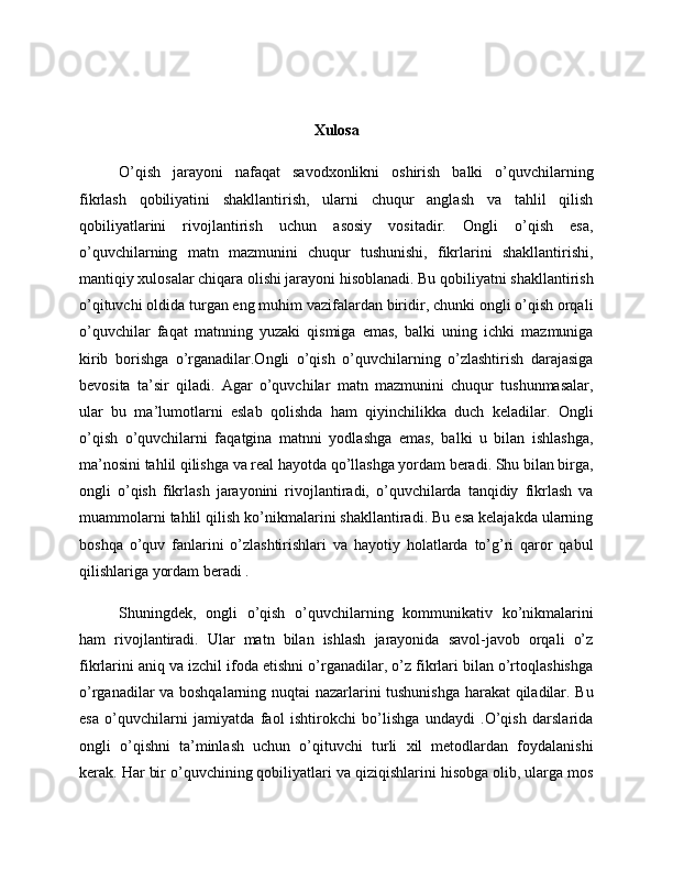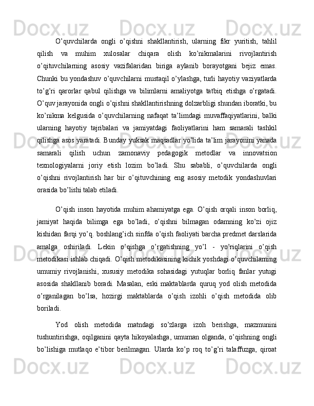 Kitobxonlik faoliyatini shakllantirish (to’g’ri, tez, ongli o’qish)