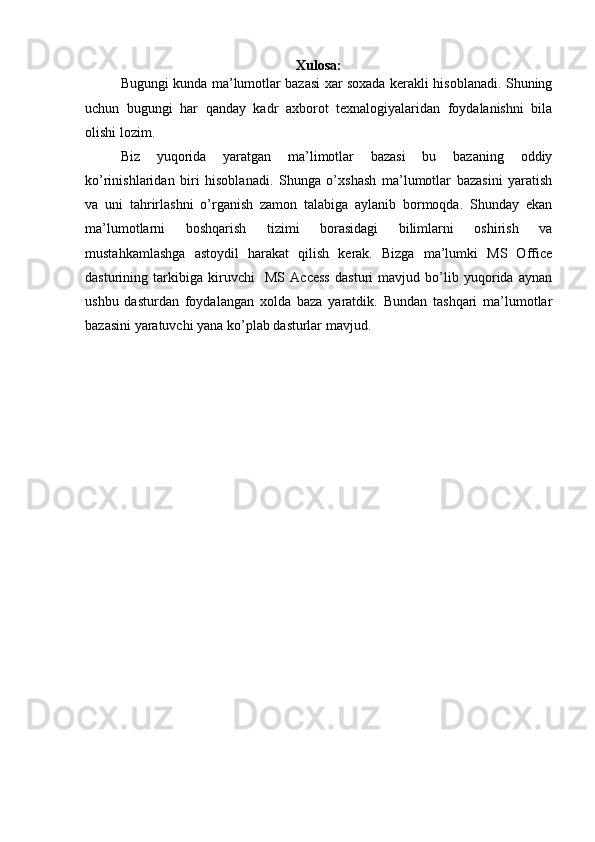 Kiyim kechak do’koni Malumotlar bazasini yaratish