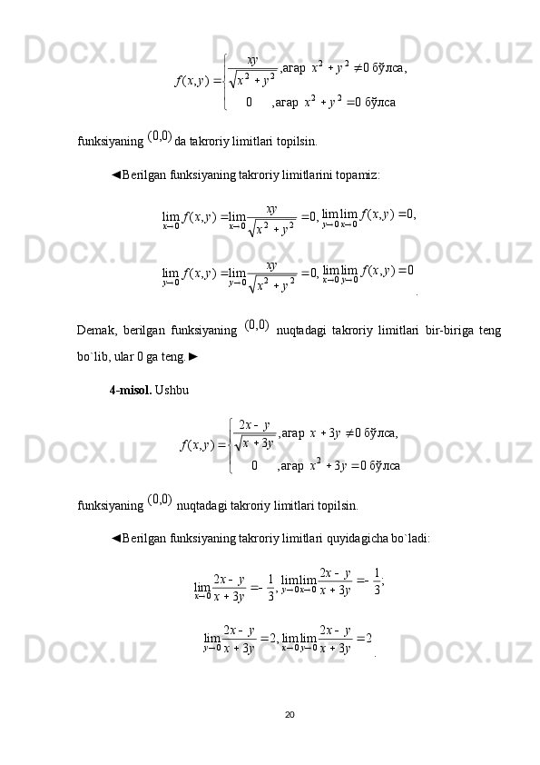 1.3-§. Ko’p o’zgaruvchili funksiya va uning limiti....………………...................12