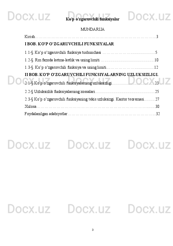 2.2-§ Uzluksizlik funksiyalarning xossalari...........................................................25
