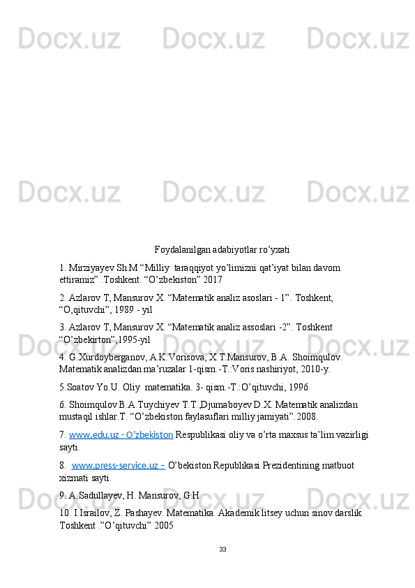 Foydalanilgan adabiyotlar………………………………………………………...32