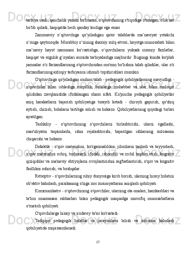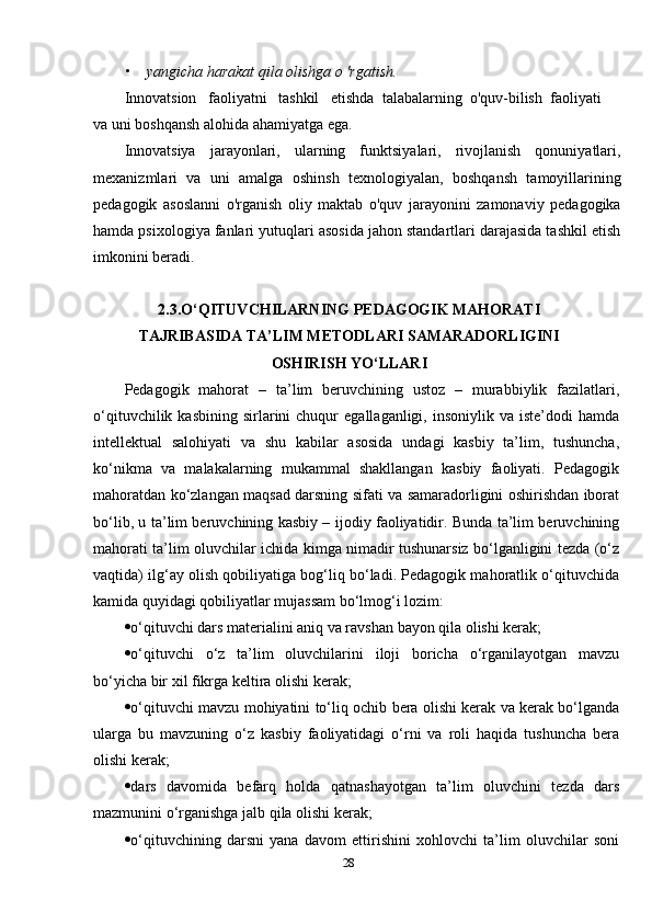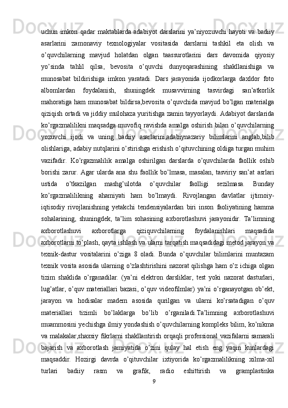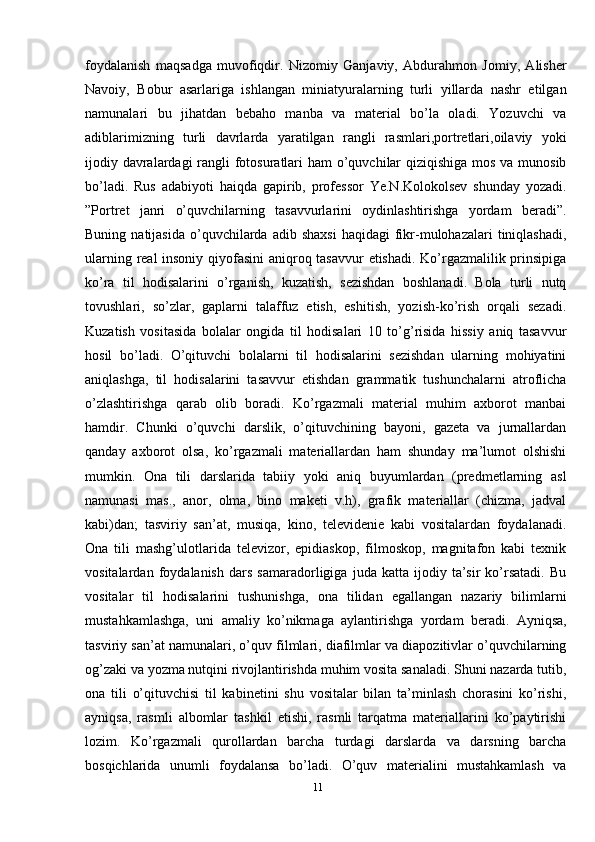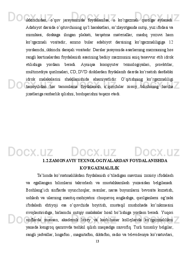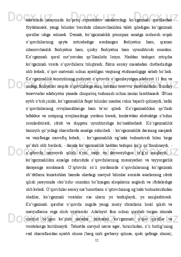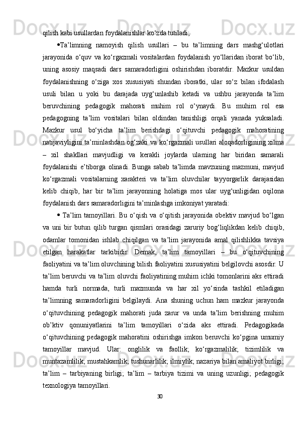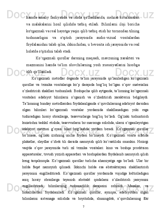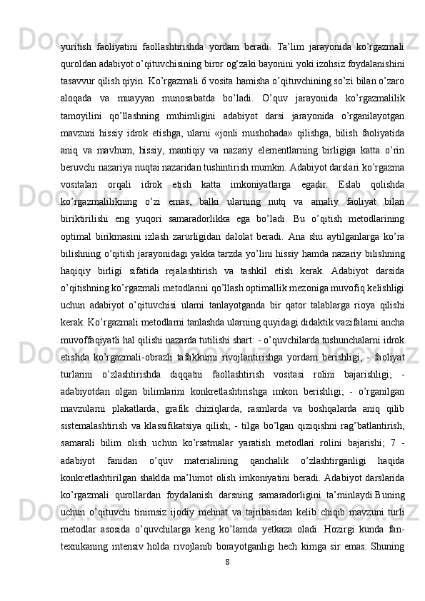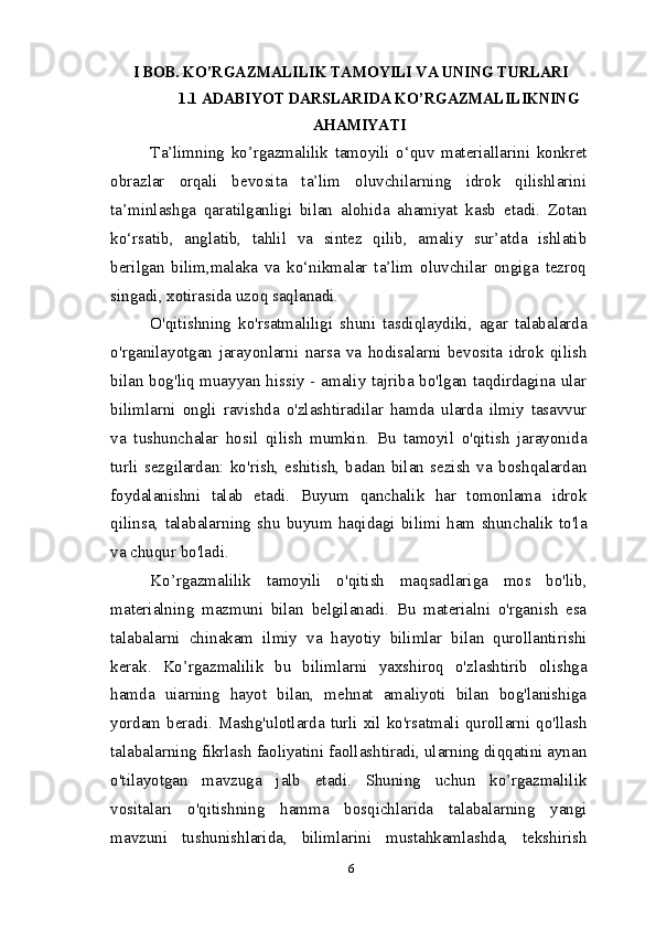 Ko'rgazmalilik tamoyili asosida darslar samaradorligini oshirish yo'llari