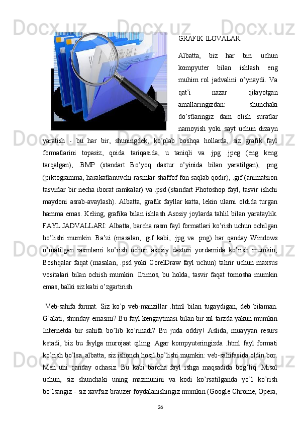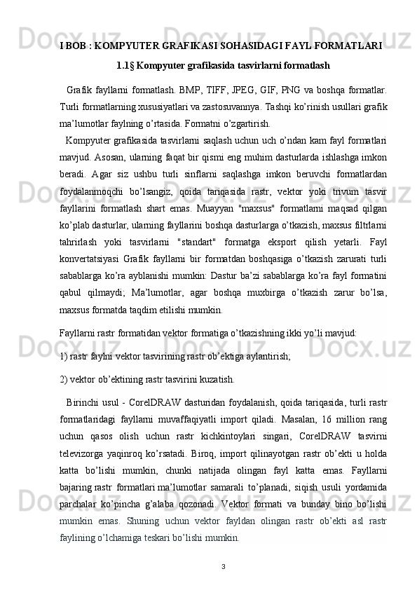 Kompyuter grafikasi sohasidagi fayl formatlari va bir-biridan farqli jihatlari