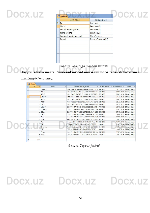 5-rasm. Jadvalga maydon kiritish