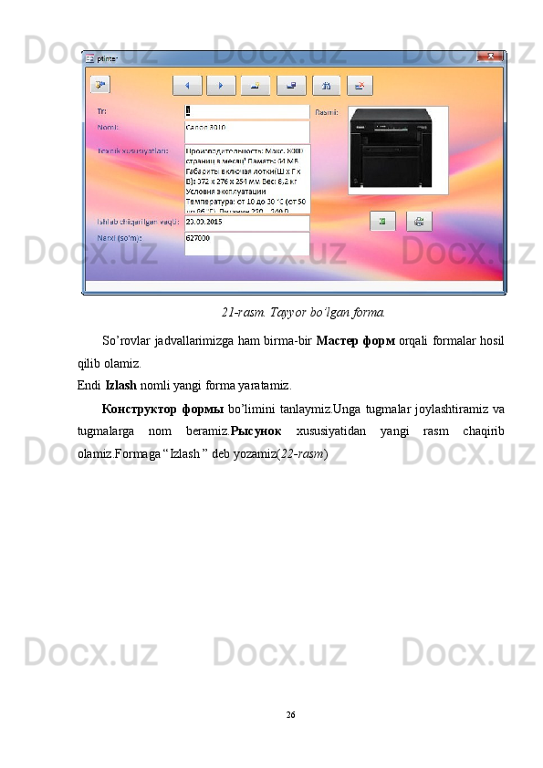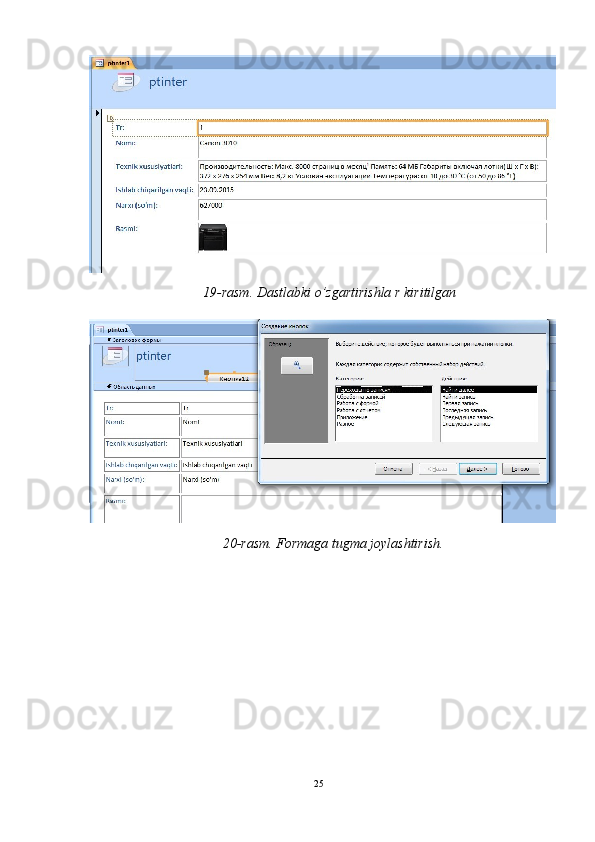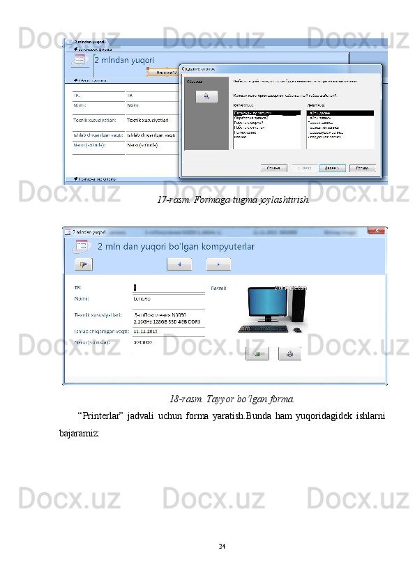 “Printerlar”   jadvali   uchun   forma   yaratish.Bunda   ham   yuqoridagidek   ishlarni