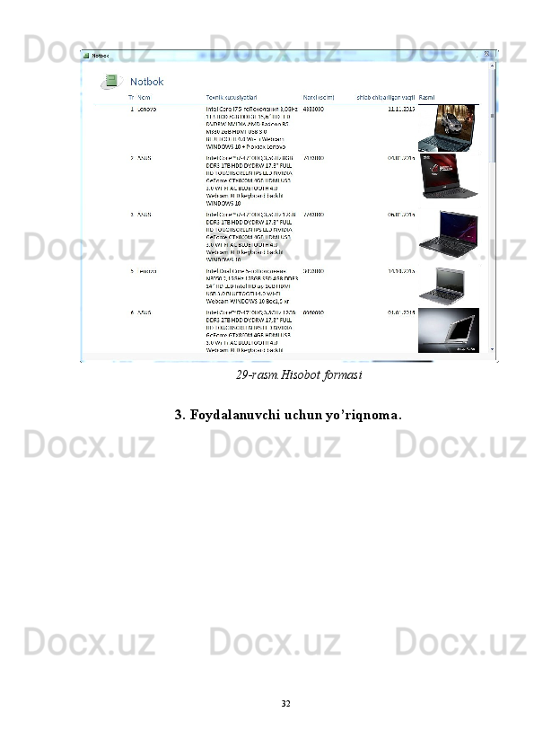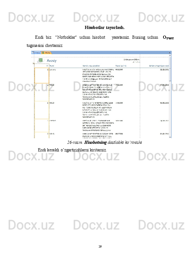 4. « Отчёты » (Xisobotlar)-bu ob’ekt yordamida saralangan ma’lumotlar