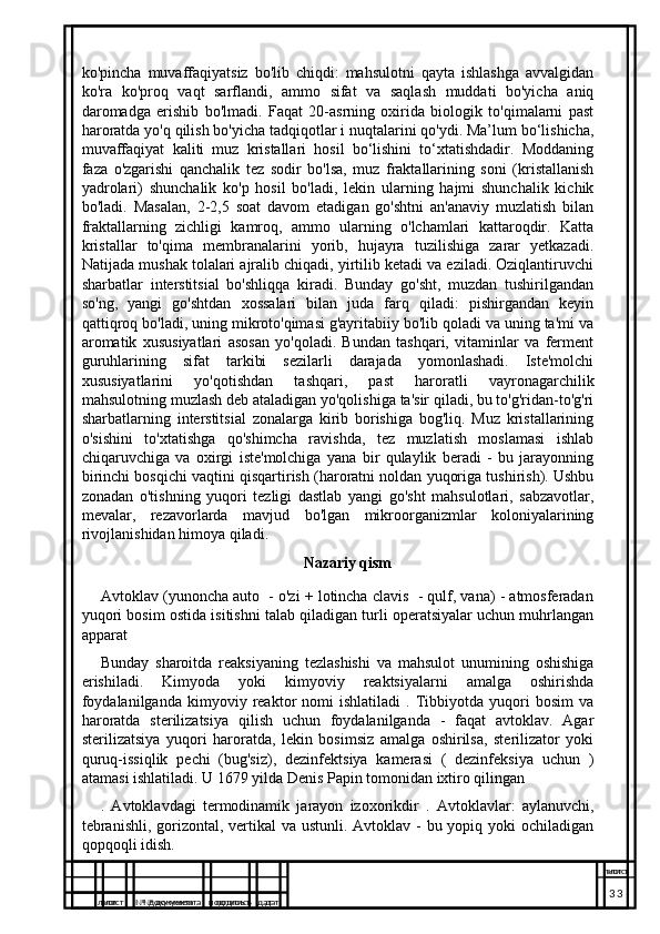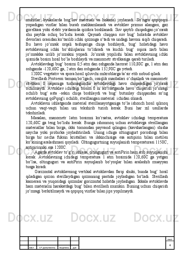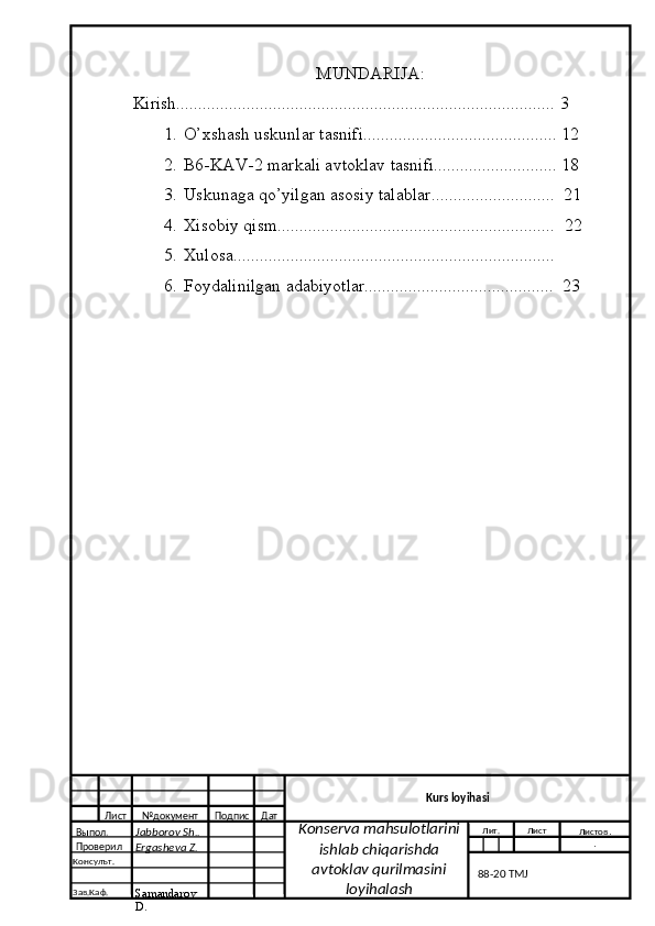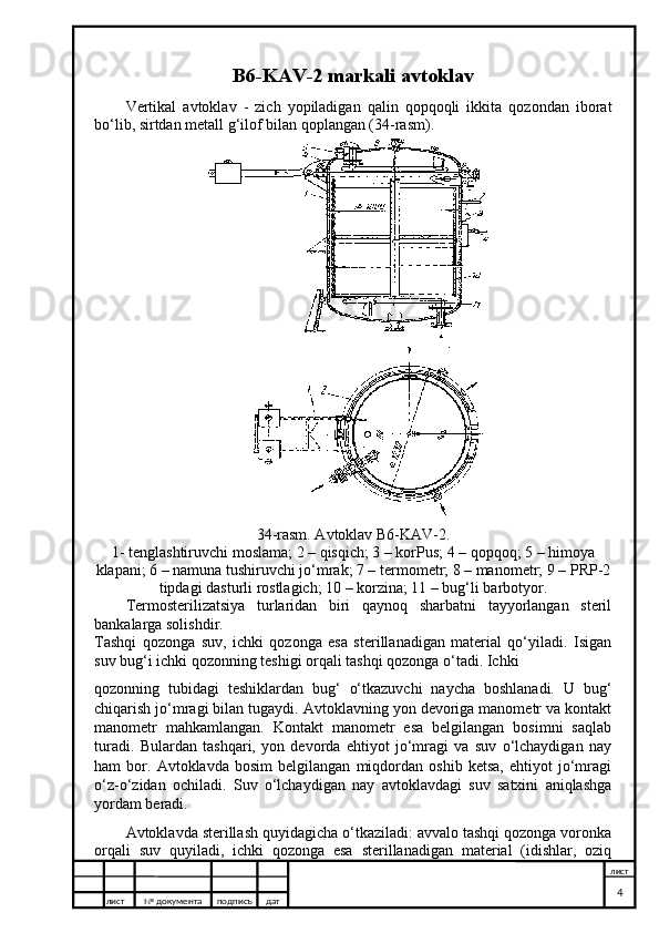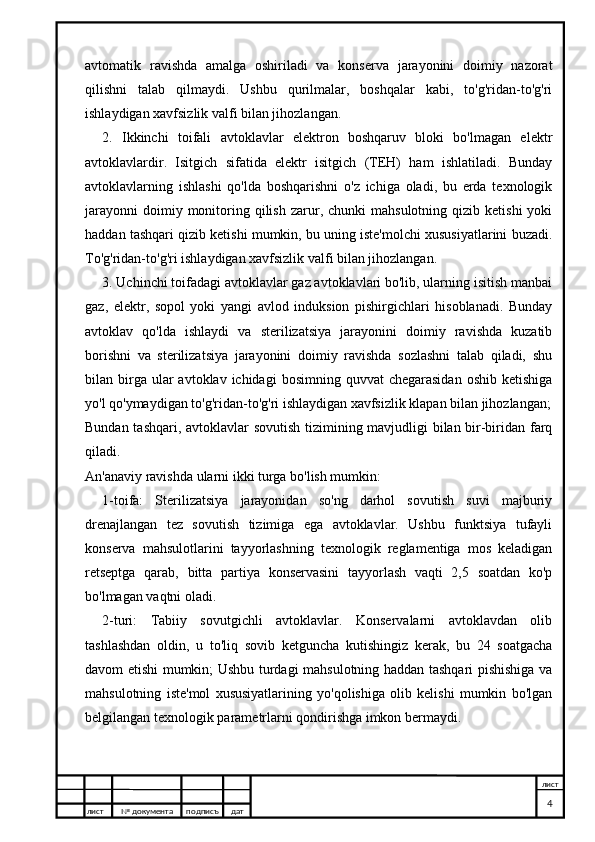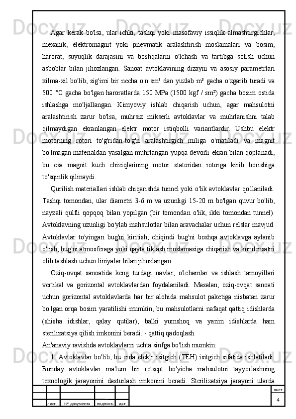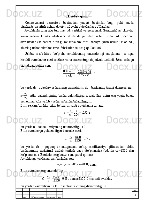 Konserva mahsulotlari ishlab chiqarishdagi avtoklav apparatini loyihalash