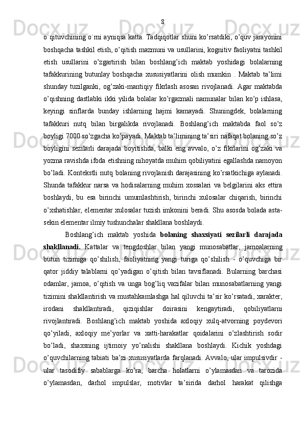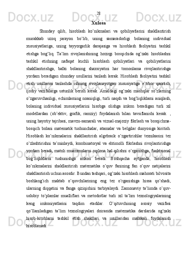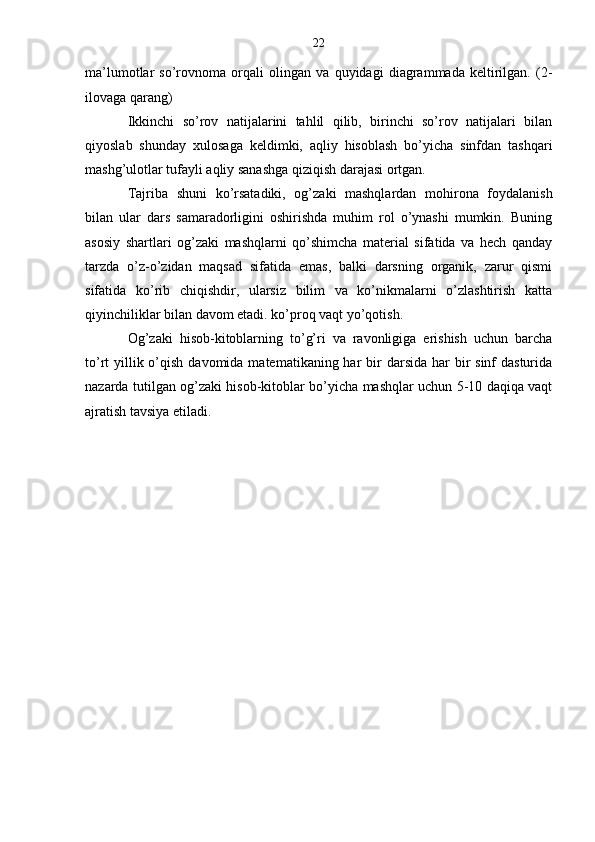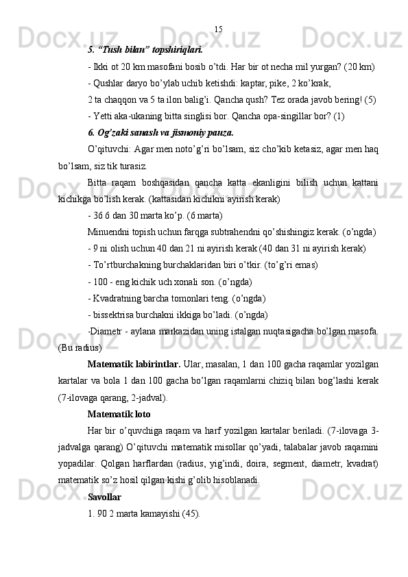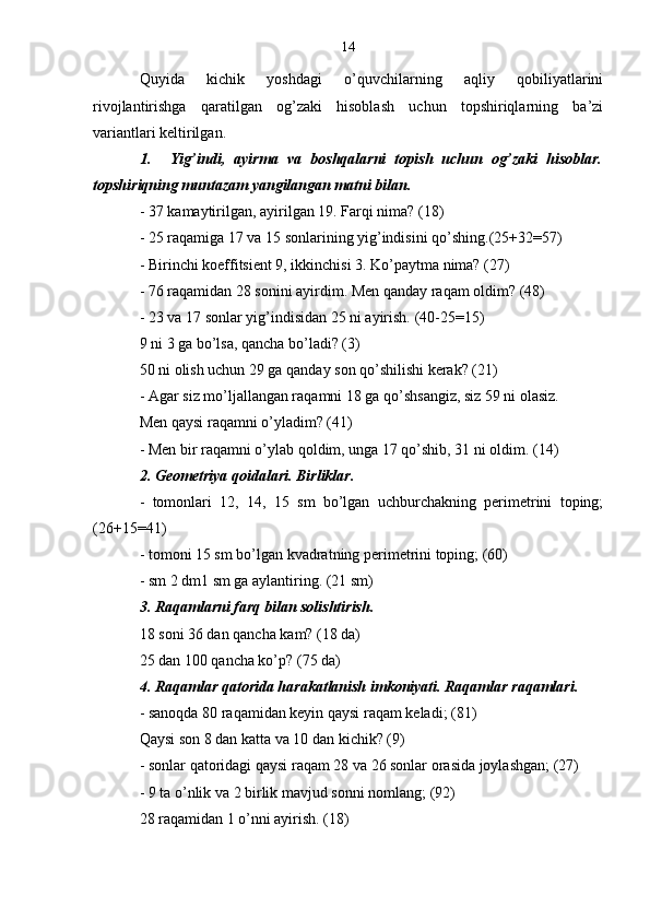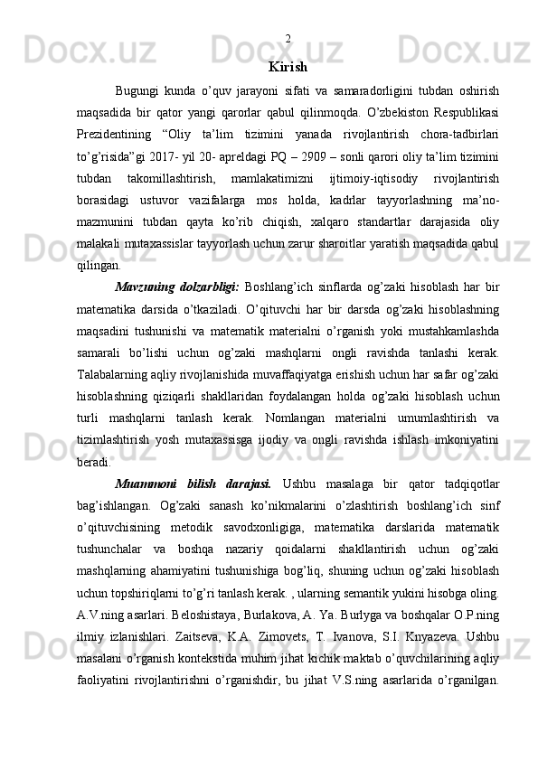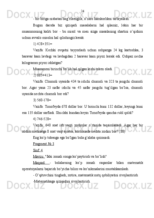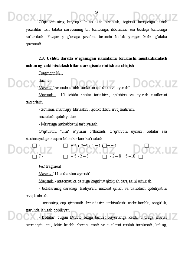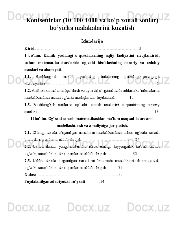 Kontsentrlar (10-100-1000 va ko’p xonali sonlar) bo’yicha malakalarini kuzatish