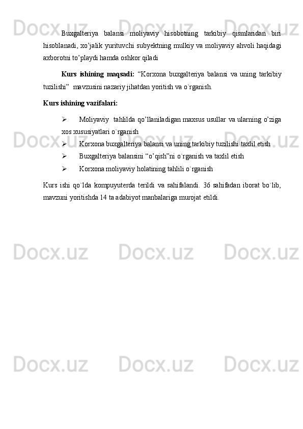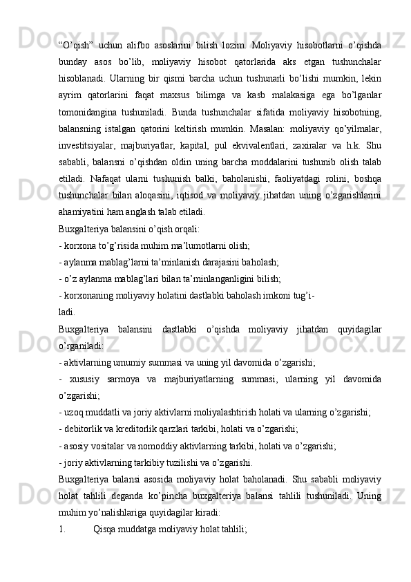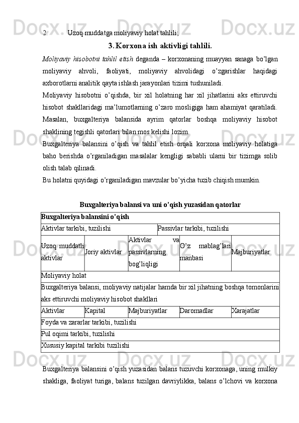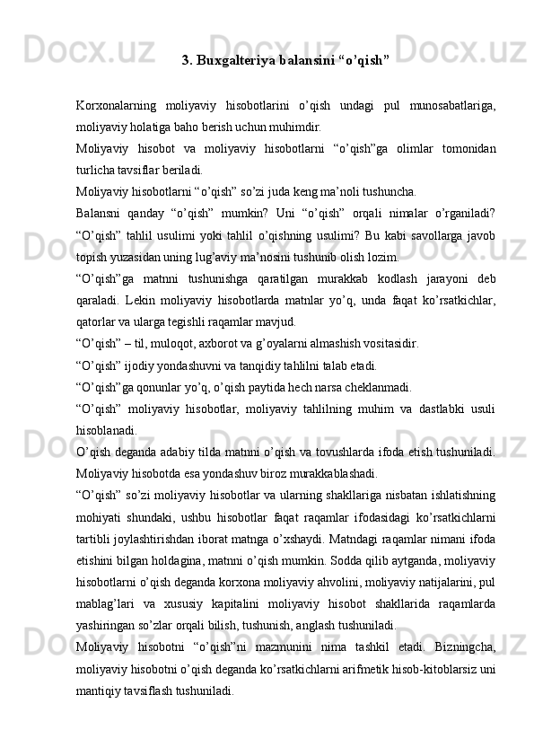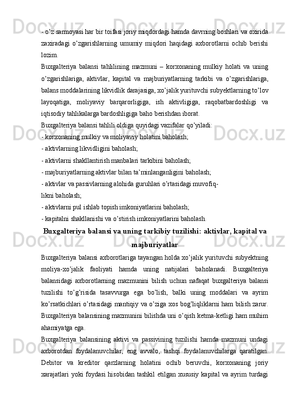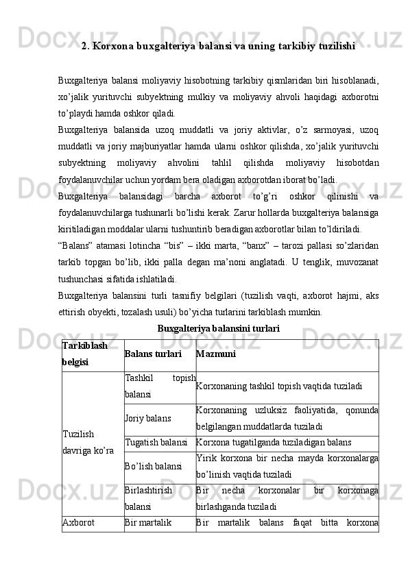 Korxona buxgalteriya balansi va uning tarkibiy tuzilishi