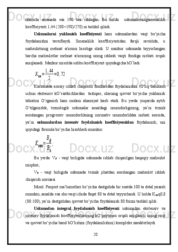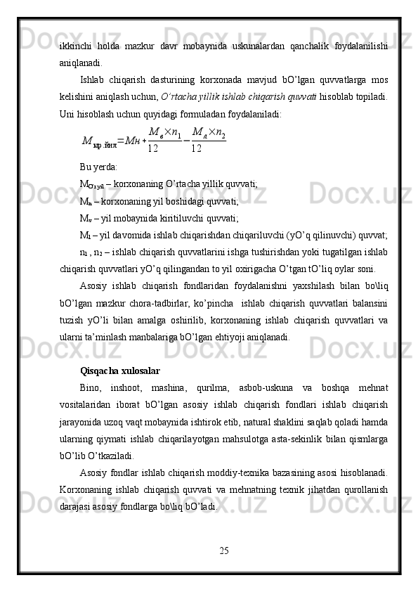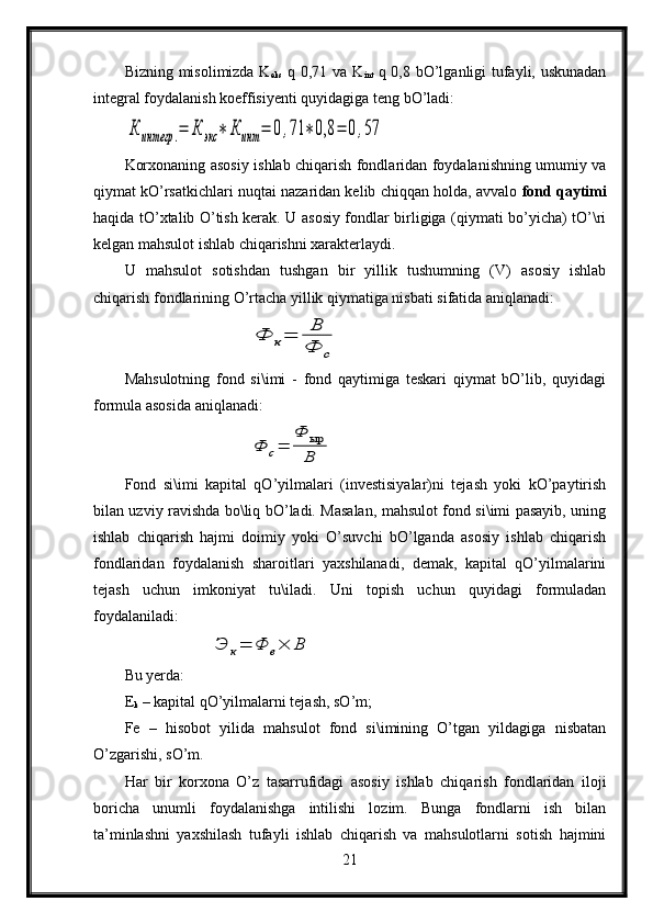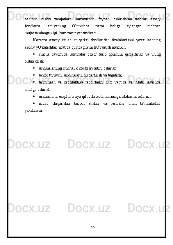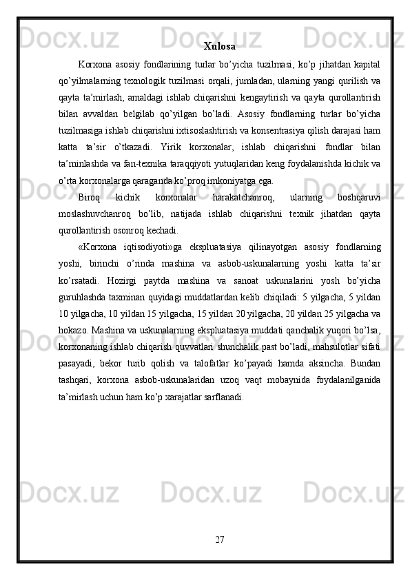 Korxonalarda ishchi kuchidan foydalanish samaradorligiga asosiy fondlarning ta’siri