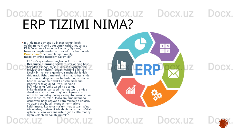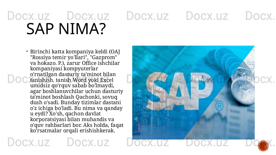 Korxonani boshqarishda SAP ERP tizimining o’rni
