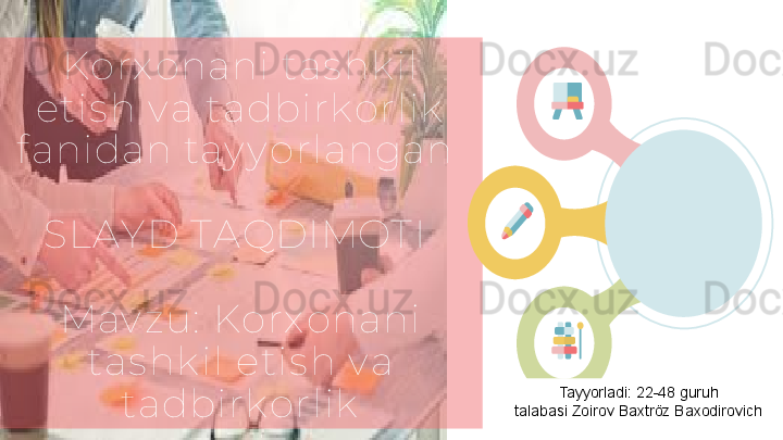 Korxonani tashkil etish va tadbirkorlik