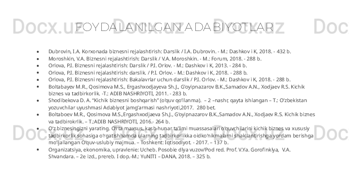 FOYDALANILGAN ADABIYOTLAR REJA: X ULOSA