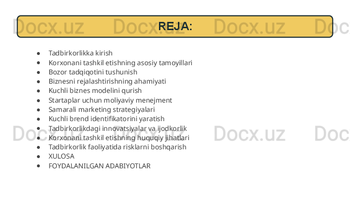 biznes-rejani yaratishni o'z