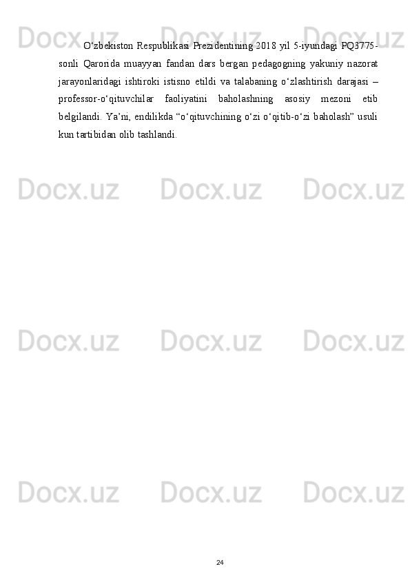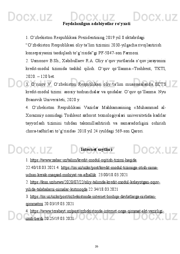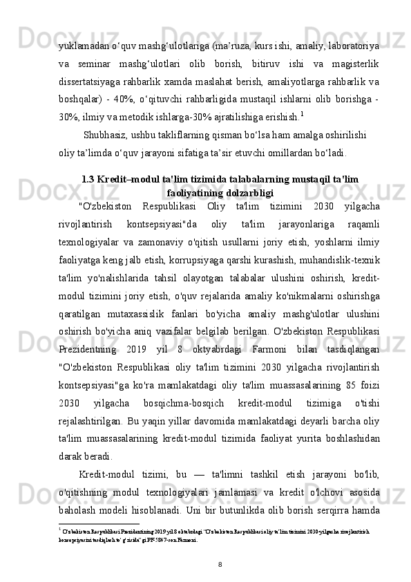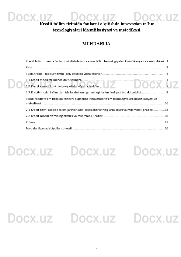 Kredit ta’lim tizimida fanlarni o’qitishda innovasion ta’lim texnologiyalari klassifikasiyasi va metodikasi.