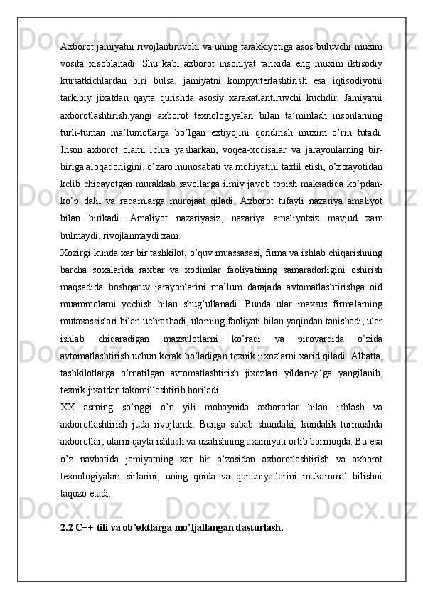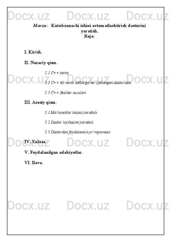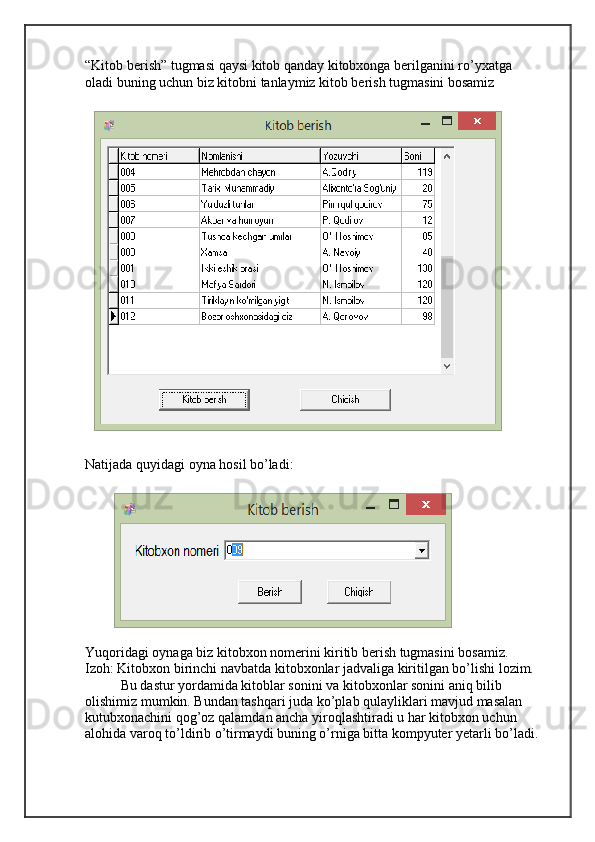Kutubxonachi ishini avtomatlashtirish dasturini yaratish