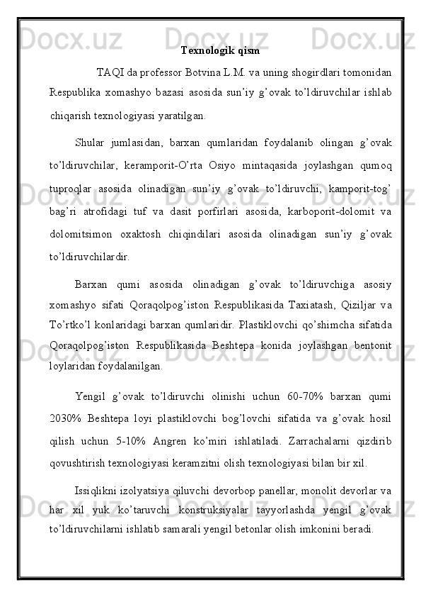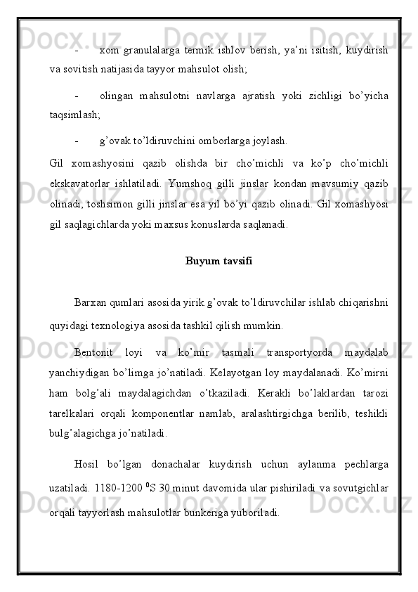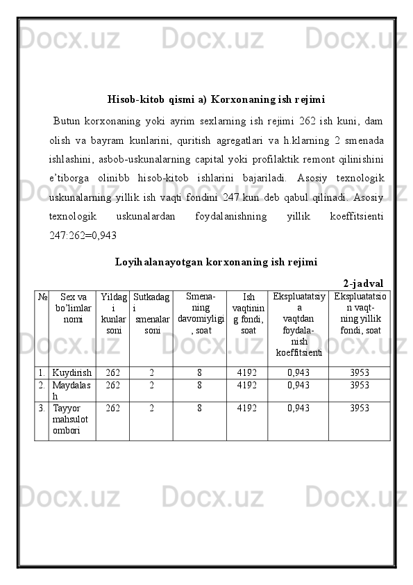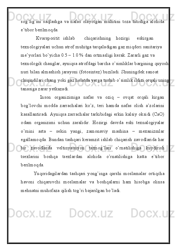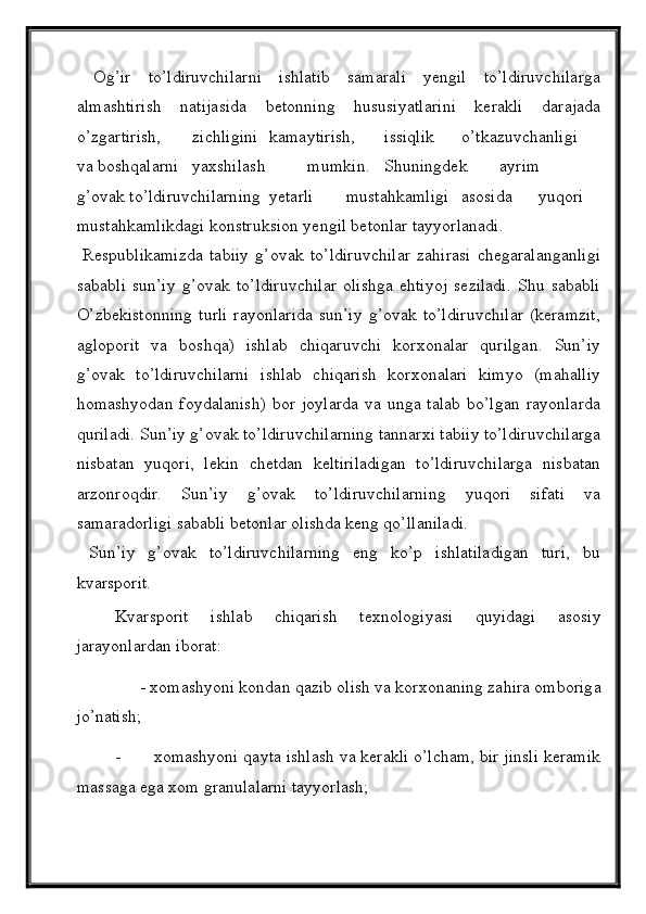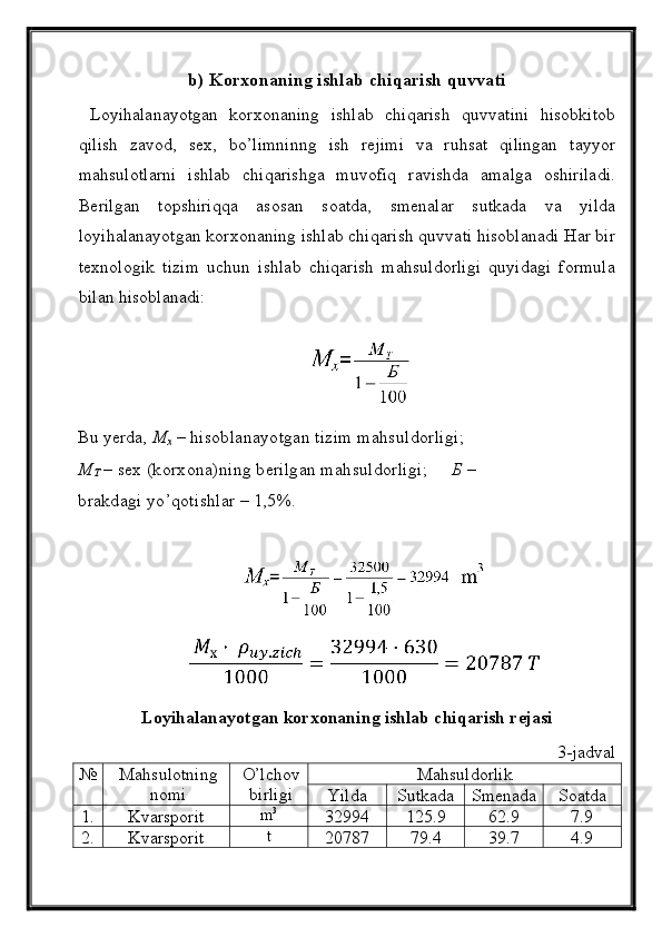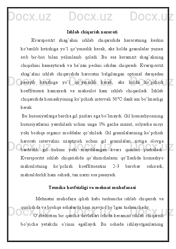 Kvarsporit ishlab chiqarish sexini loyixalash