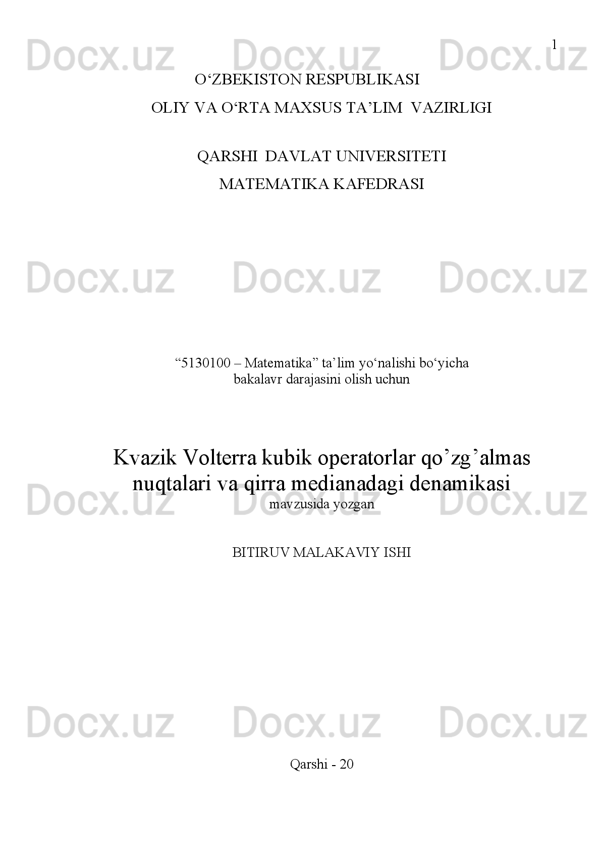 Kvazik Volterra kubik operatorlar qo’zg’almas nuqtalari va qirra medianadagi dinamikasi