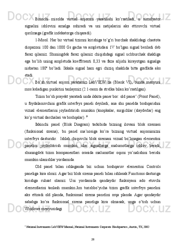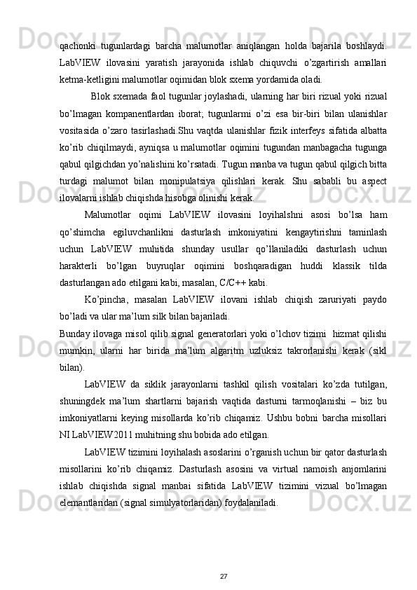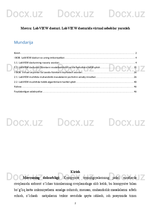 1.2. LabVIEW dasturida tizimlarni modellashtirish va ma’lumotlarni tahlil qilish. 10