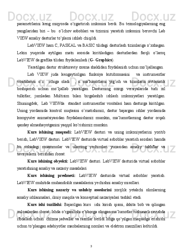 I BOB. LabVIEW dasturi va uning imkoniyatlari 4