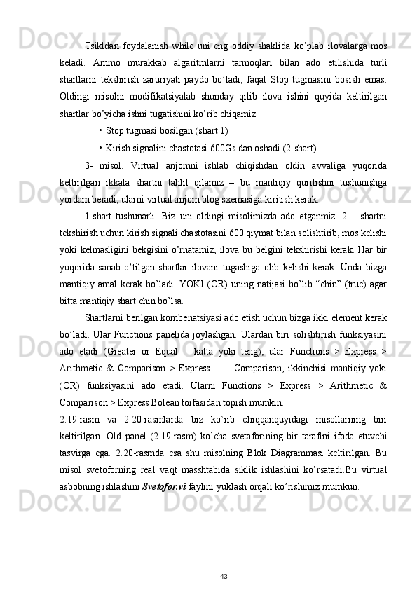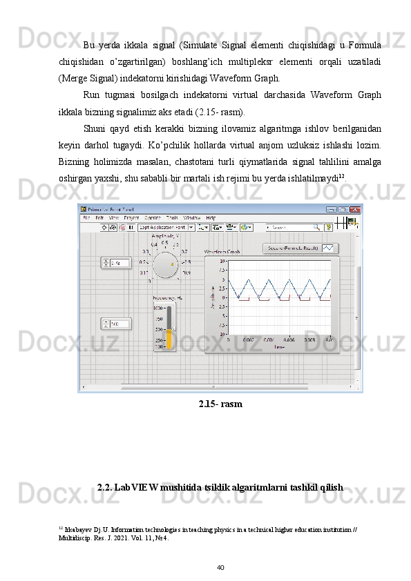 2.2. LabVIEW mushitida tsiklik algaritmlarni tashkil qilish. 39