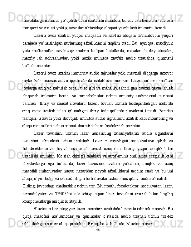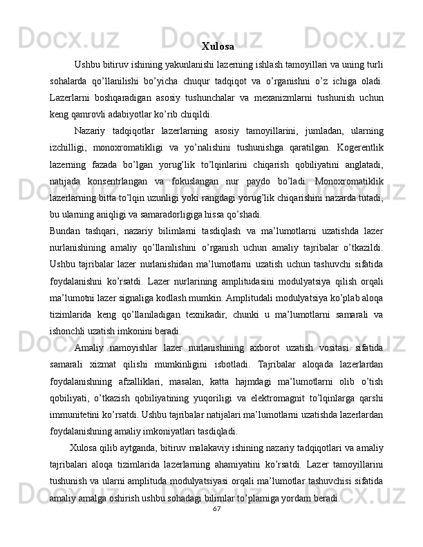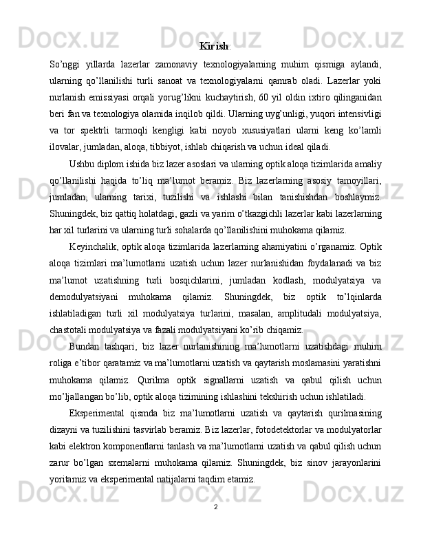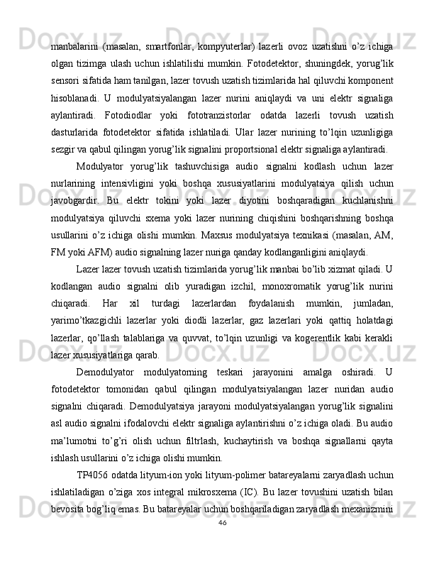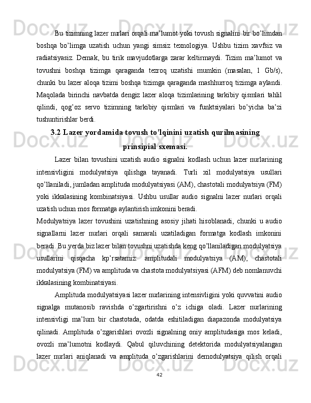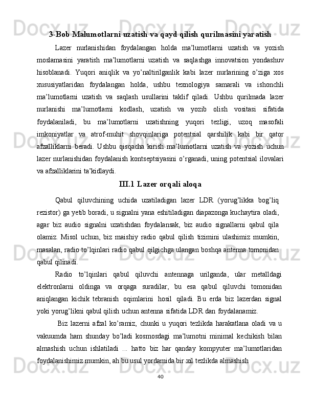 Lazer nurlanishi yordamida ma’lumotlarni uzatish va qayd qilish qurilmasini yasash